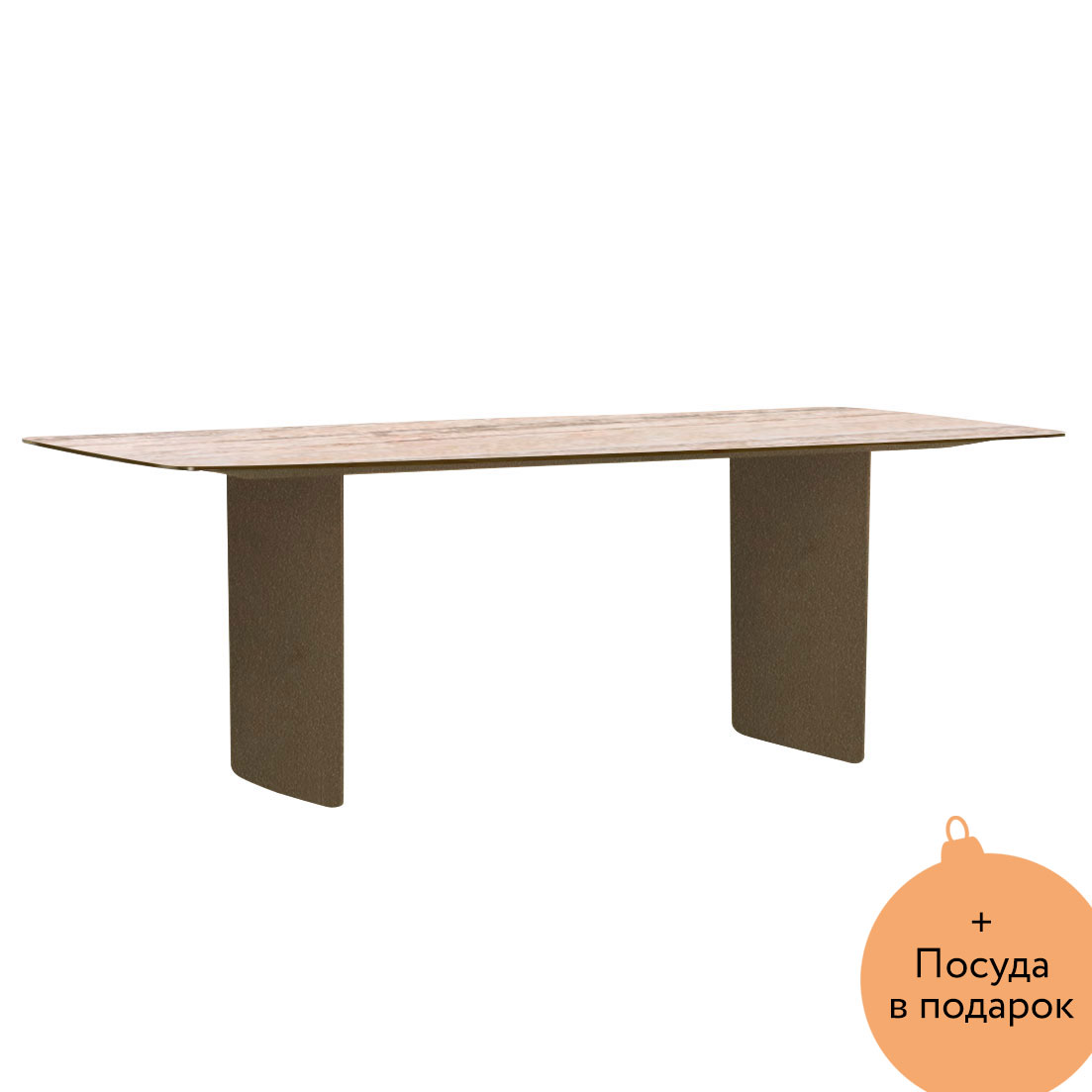 Прямоугольный обеденный стол Midj Foil botte с металлическим основанием с 2-мя ножками серо-коричневого цвета (Fango (E3) cat.M2) cat.M2) и столешницей из мрамора бежевого цвета (Beige Travertino Romano (MB2) сat.GMM).