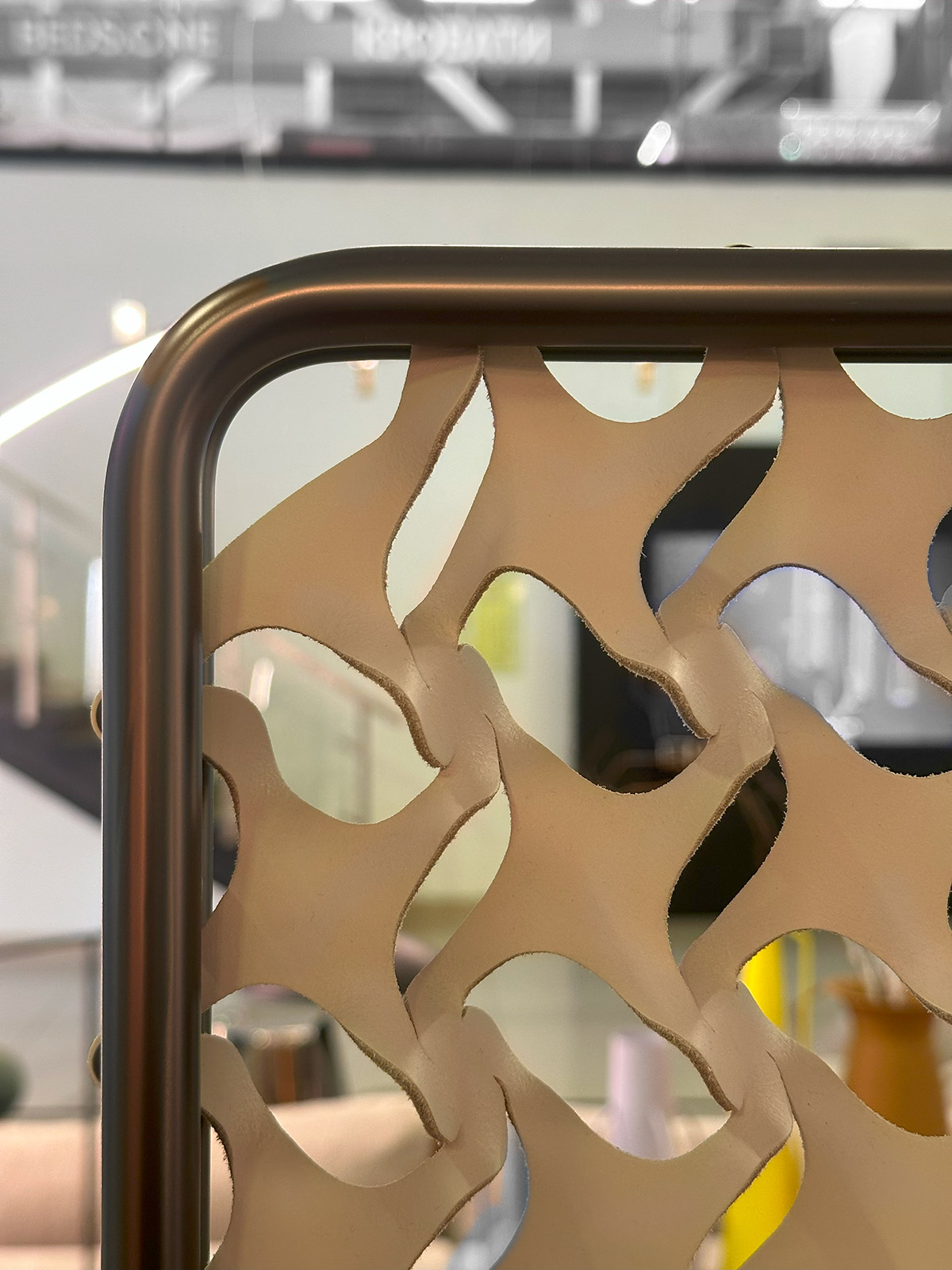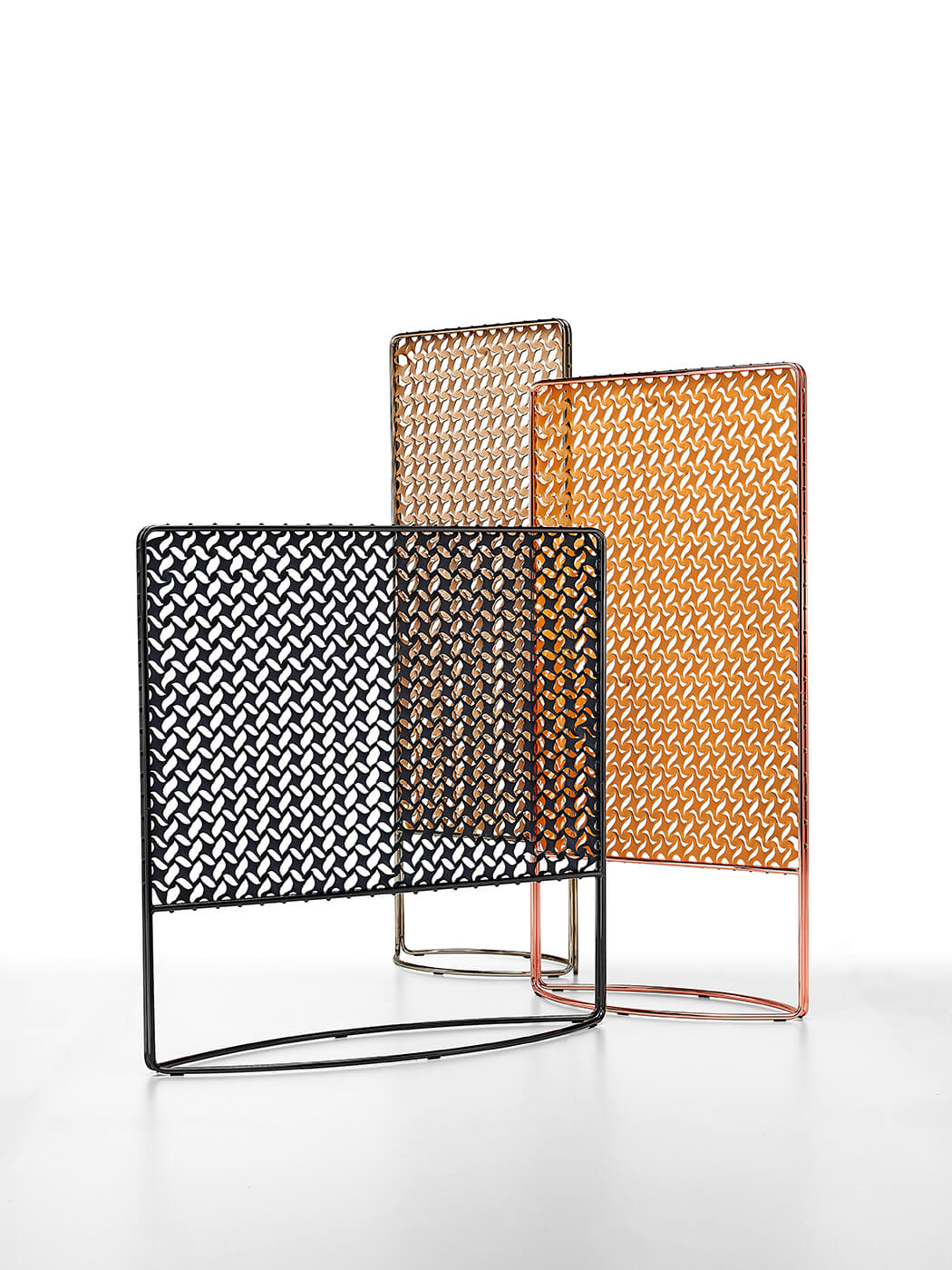 Ширма Sunrise позволяет зонировать и переопределять пространства, создавать новые среды для любого случая просто и мобильно. Это небольшое архитектурное произведение, разработанное Франко Поли, на основе трубчатой стальной конструкцией с матовой или глянцевой отделкой и панелью из кожи или тосканской кожи, украшенной ритмичными прорезями. Ширма Sunrise легко устанавливается и перемещается. Ширма также может иметь чисто декоративную функцию: конструкция пропускает свет и создает красивую игру света и тени.