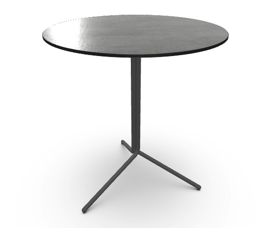 Небольшой стол с круглой столешницей диаметром 70 см из HPL с отделкой под цемент. Основание из металла цвета графит.