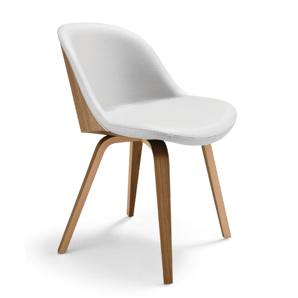 Кресло Danny S L TS с деревянным основанием и задней частью спинки. Обивка из экокожи белого цвета. Доступны другие варианты отделки дерева и обивки: кожа, экокожа или ткань.