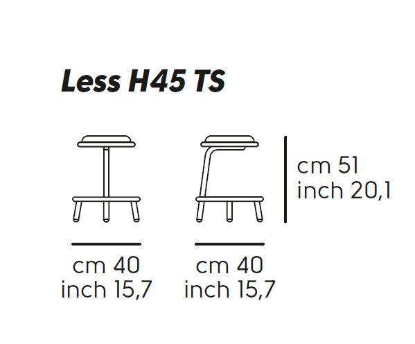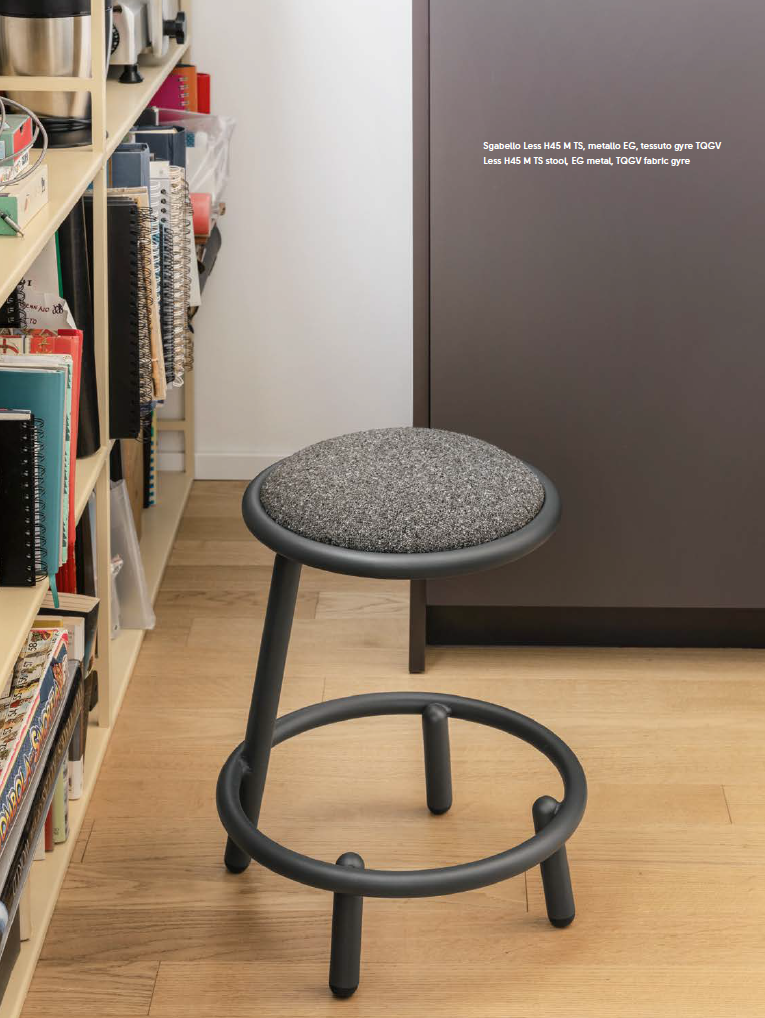 Богатая палитра отделок позволит выбрать оптимальный вариант для любого пространства, с возможностью мягкой обивки сиденья текстилем, натуральной или искусственной кожей, а также древесиной. Серия Less предлагает табуреты с высотой сиденья 45,65 и 75см.