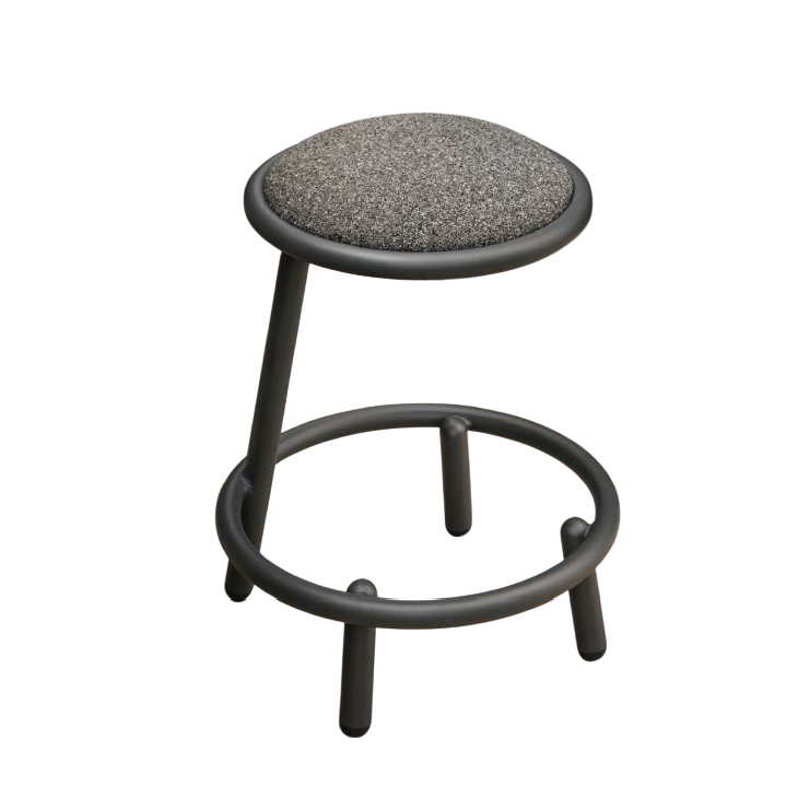 Стоимость указана за низкий табурет Less H45 с графитовым металлическим каркасом и мягким сиденьем в дымчато-серой текстильной обивке из экологичного переработанного полипропилена.