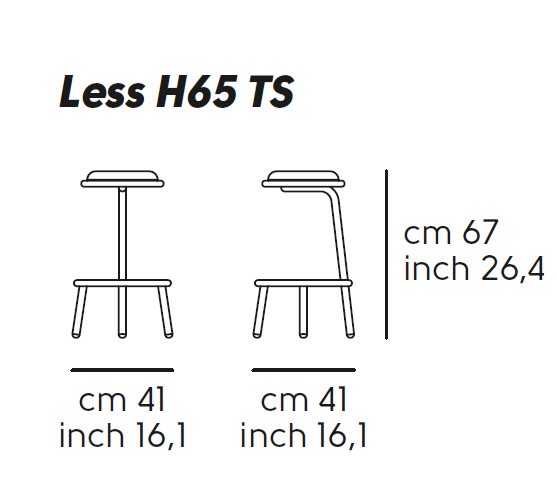 Богатая палитра отделок позволит выбрать оптимальный вариант для любого пространства, с возможностью мягкой обивки сиденья текстилем, натуральной или искусственной кожей, а также древесиной. Серия Less предлагает табуреты с высотой сиденья 45, 65 и 75см.
