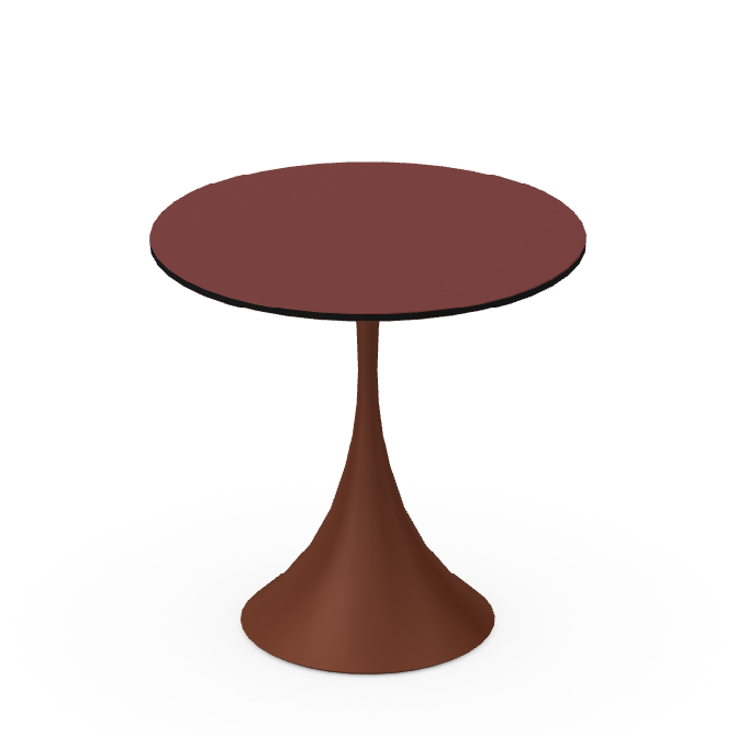 Стоимость указана за журнальный столик Leo с белым металлическим основанием высотой 50см и столешницей диаметром 50см из декоративного бумажно-слоистого пластика насыщенного бордового цвета.