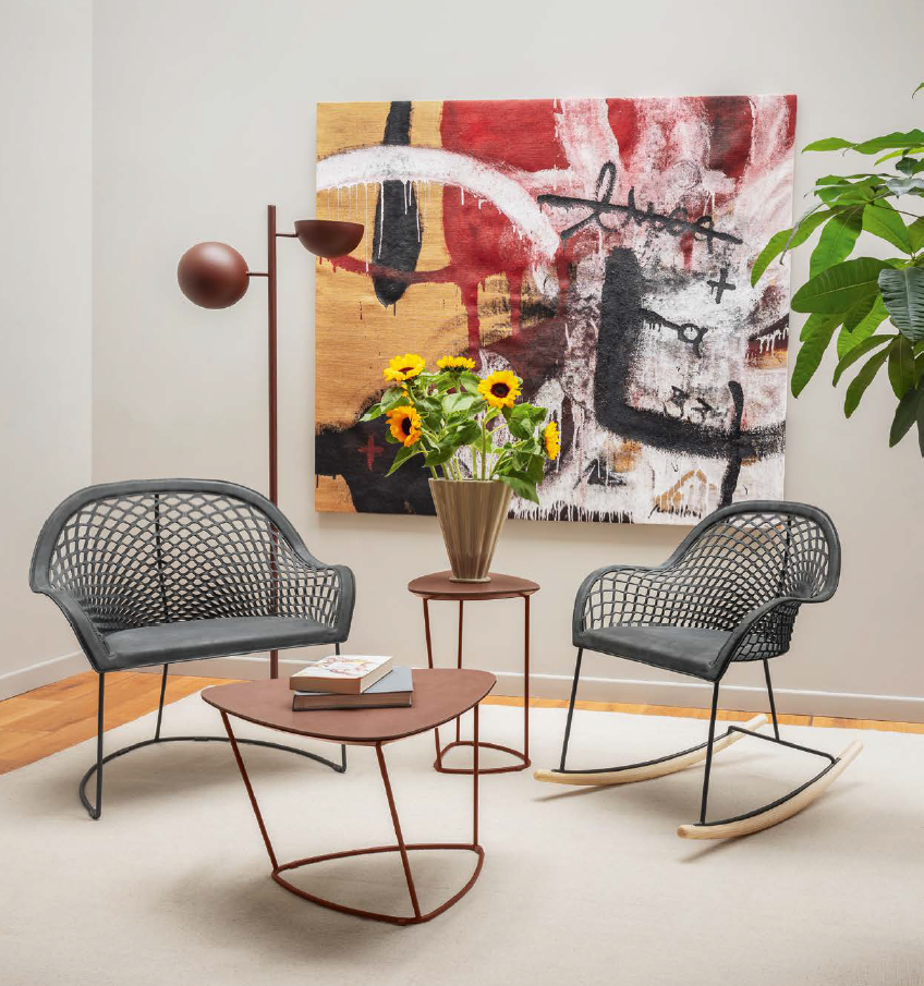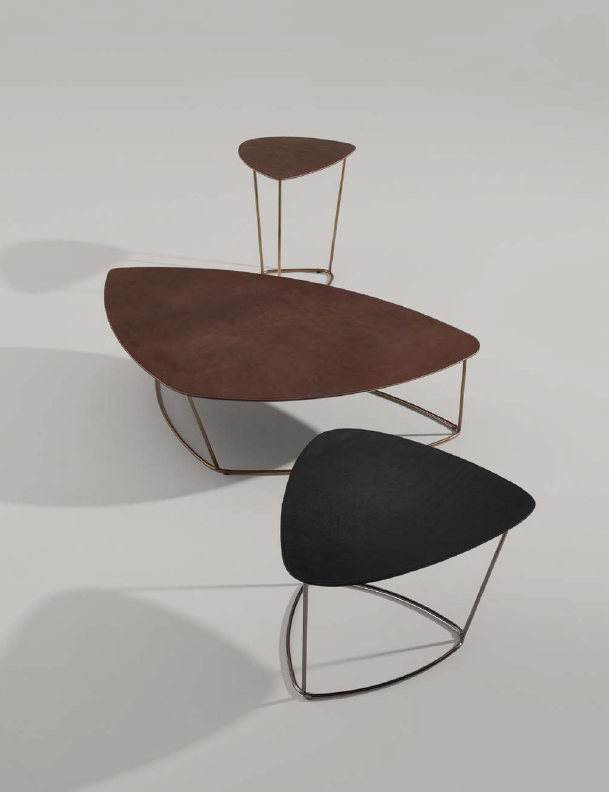 Геометричные журнальные столики Guapa с металлическим каркасом и кожаной отделкой столешницы идеально подходят для самых разных интерьеров, домашних и офисных, предлагая элегантную эстетику и утонченный стиль для самых требовательных пространств.