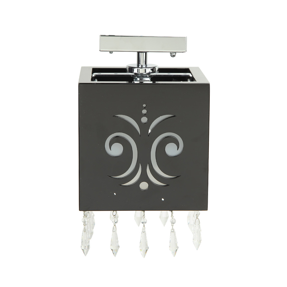 Потолочный светильник из коллекции Luxury с плафоном черного цвета из нержавеющей стали. Воздушно-плазменная художественная резка металла. Декор: хрусталь Swarovski и розовые элементы в вырезах. Дизайнер - Peter Jared.