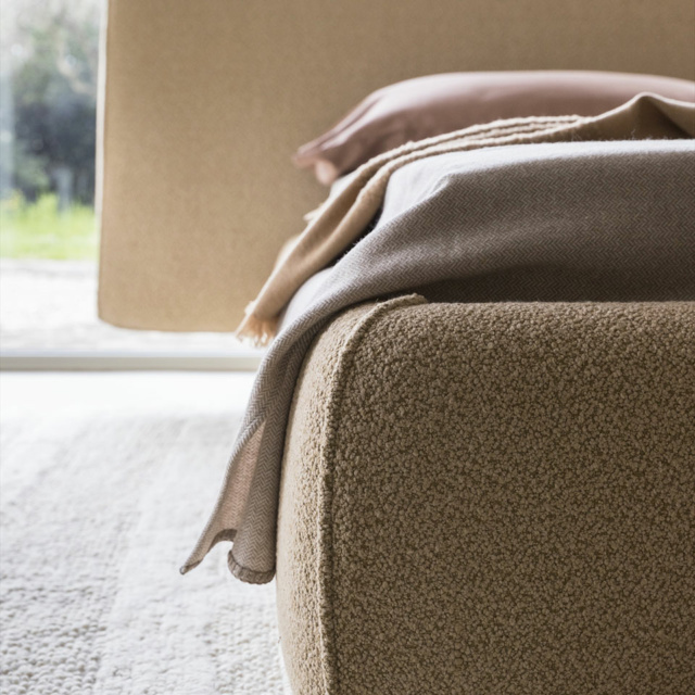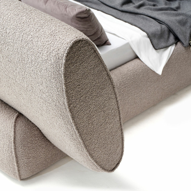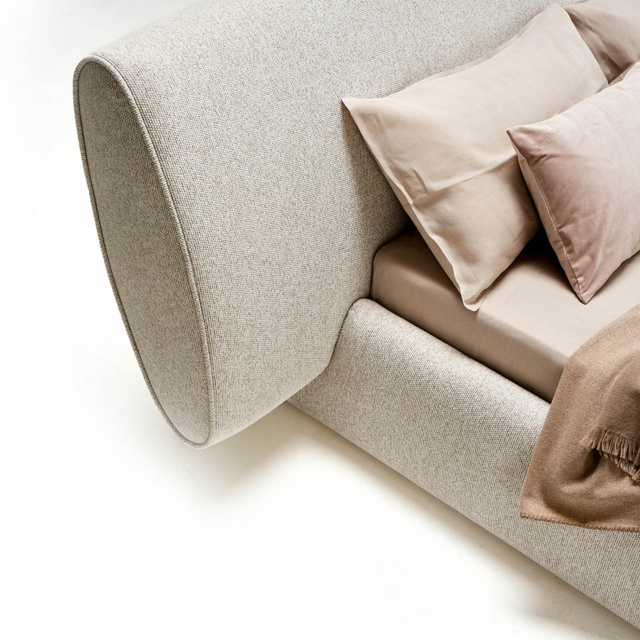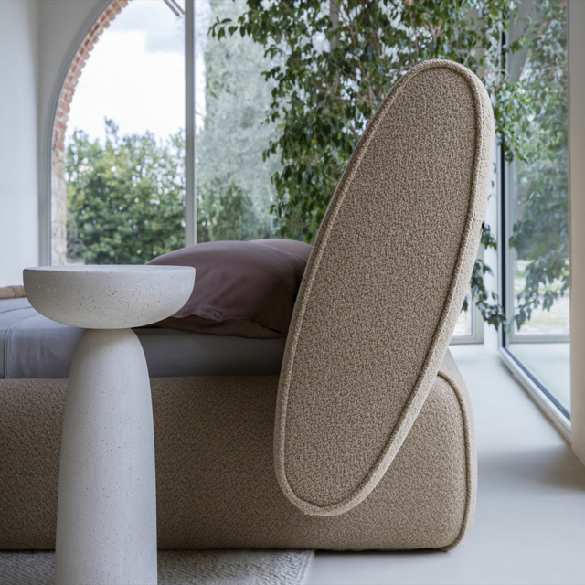 Rio - это кровать с мягкой обивкой, скульптурная и архитектурная, с резным основанием, поддерживающим изголовье, которое благодаря наклону обеспечивает эргономичное положение для комфортного чтения.