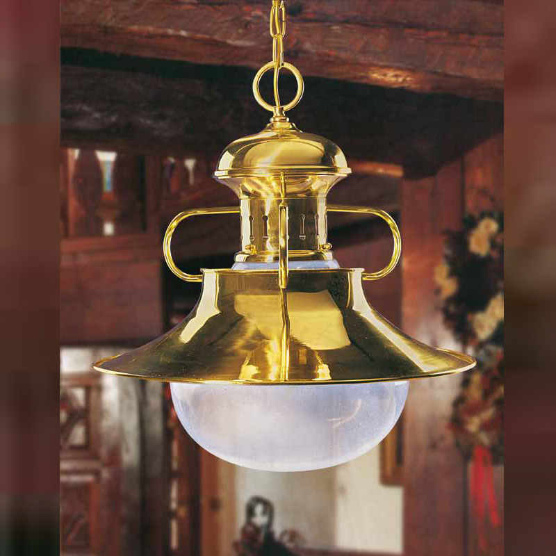 Подвесной светильник из коллекции MARINER на арматуре из полированной латуни. Плафон выполнен из прозрачного выдувного стекла. Высота светильника регулируется за счет звеньев цепи.