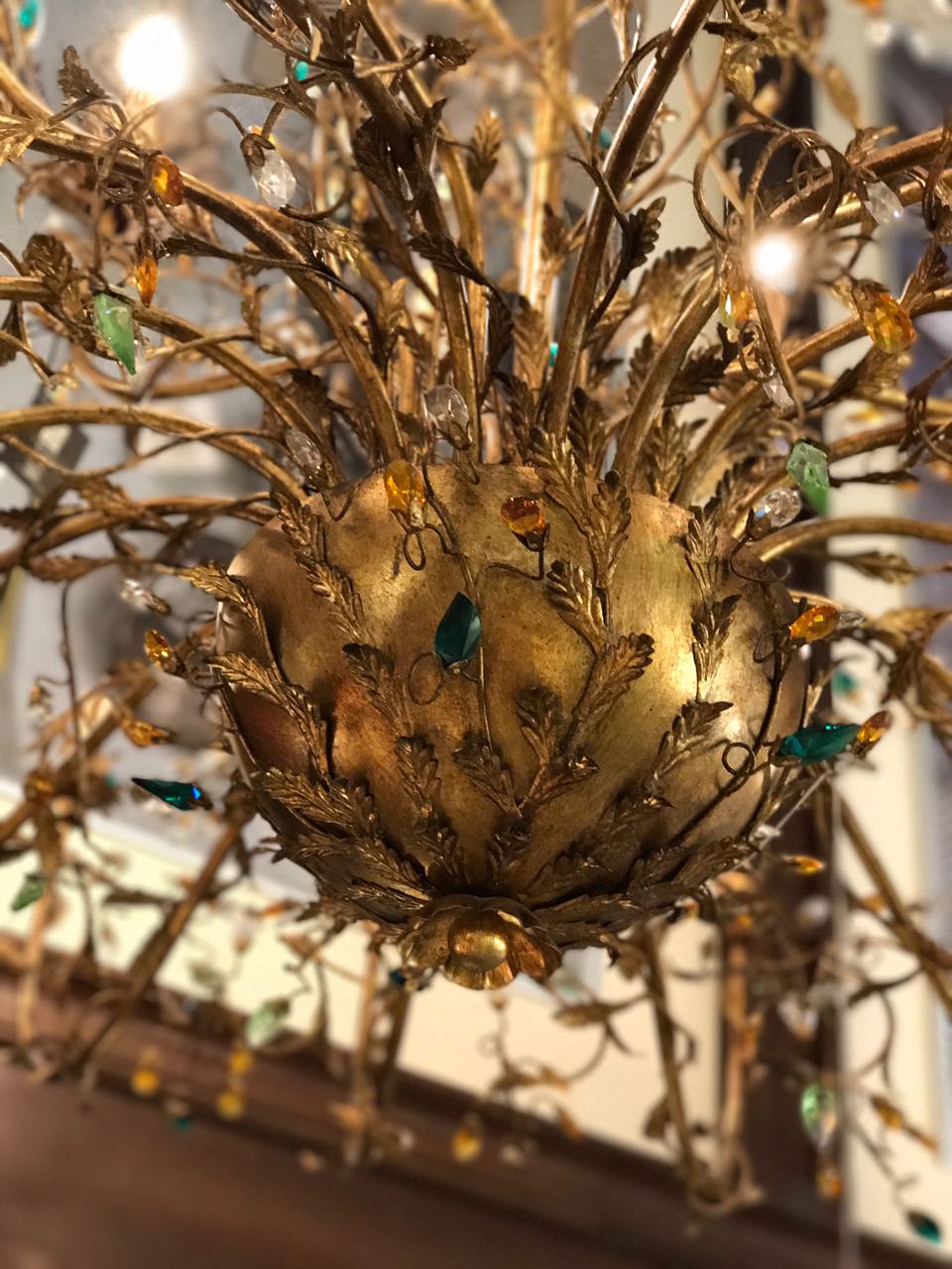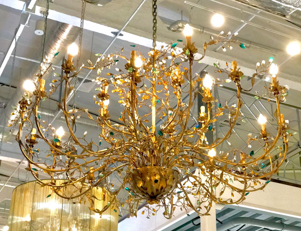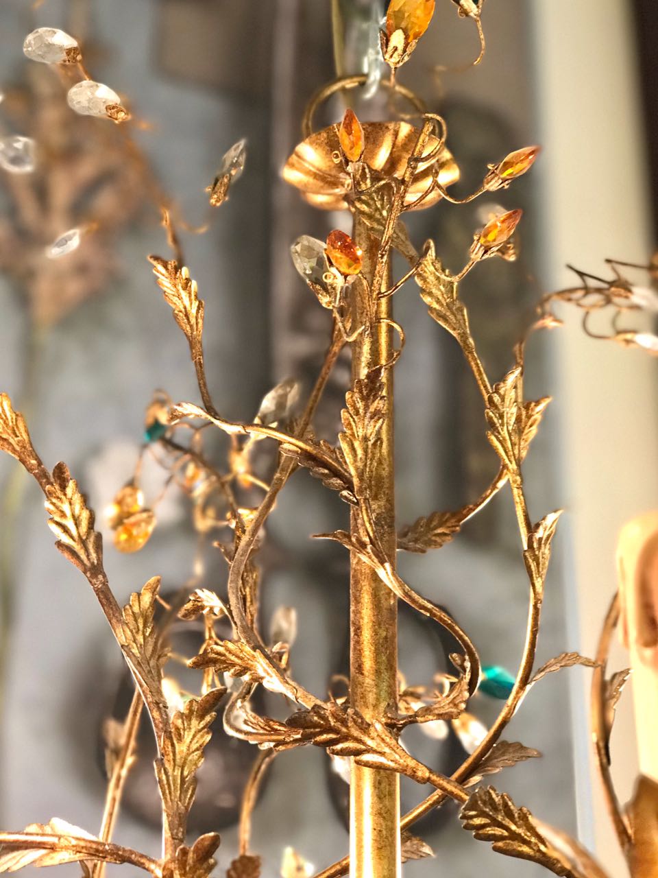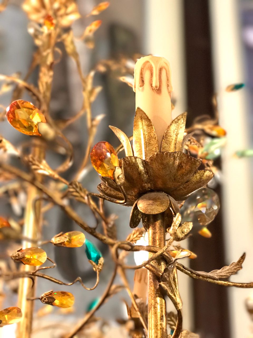 Эксклюзивная люстра Nuova Montart 1258/24 выполнена в ручную. Каждая деталь люстры уникальна и неповторима. Структура, напоминающая вьющиеся растения, покрыта сусальным золотом и украшена множеством "бутонов" из цветного хрусталя Swarovski: янтарного, зеленого, дымчатого, прозрачного.