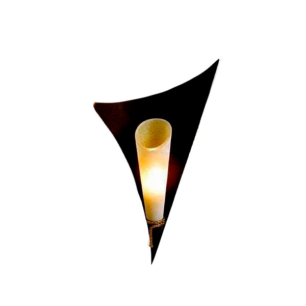 Настенный светильник на металлической арматуре темно-коричневого цвета с ржаво-оранжевым оттенком. Плафон выполнен из матового стекла белого цвета.