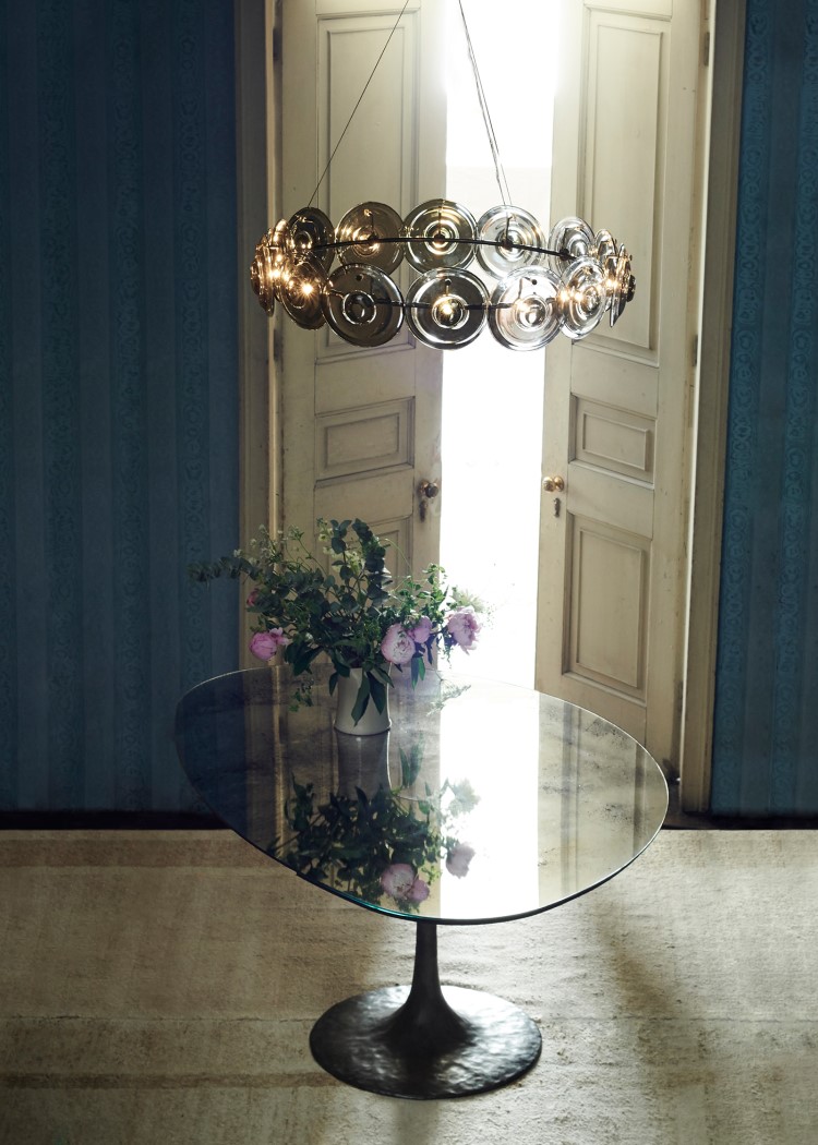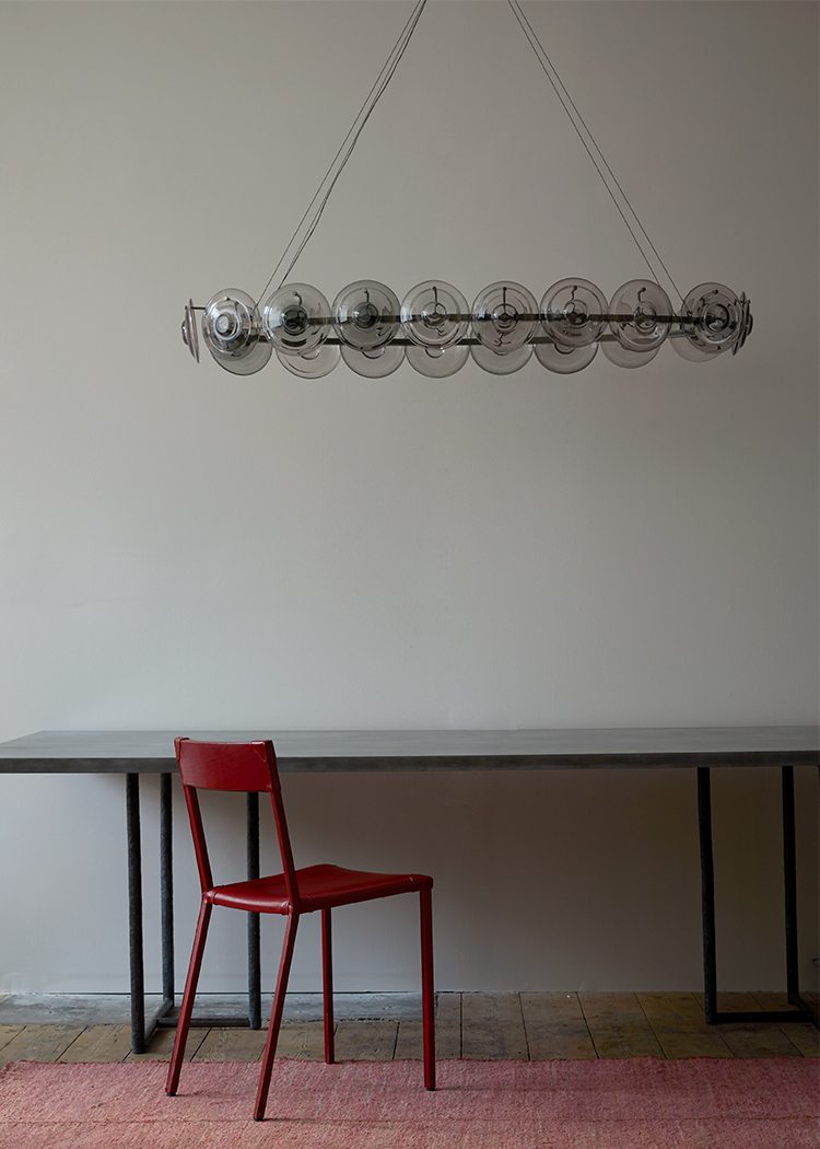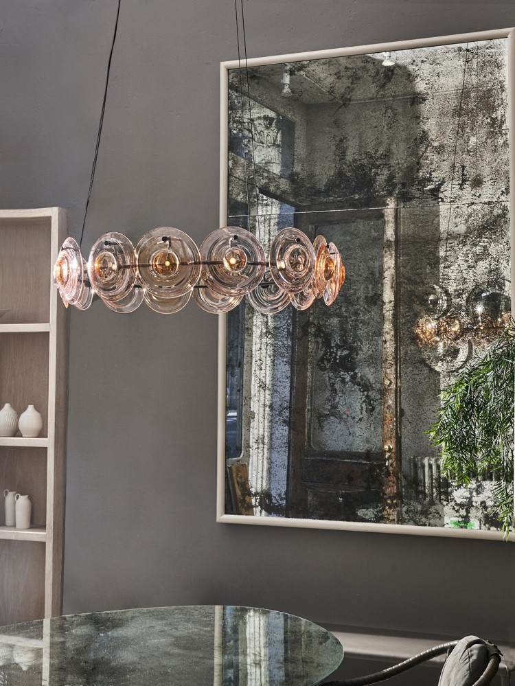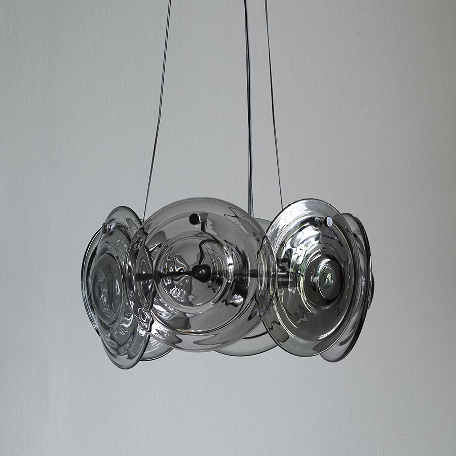 Подвесной светильник OCHRE из коллекции Cosmos на арматуре черного цвета и прозрачными дымчатыми дисками из выдувного стекла. Длина подвеса регулируется до 200см. Под заказ доступен янтарный стекла, а также различные размеры модели (60, 80 и 107 см).
