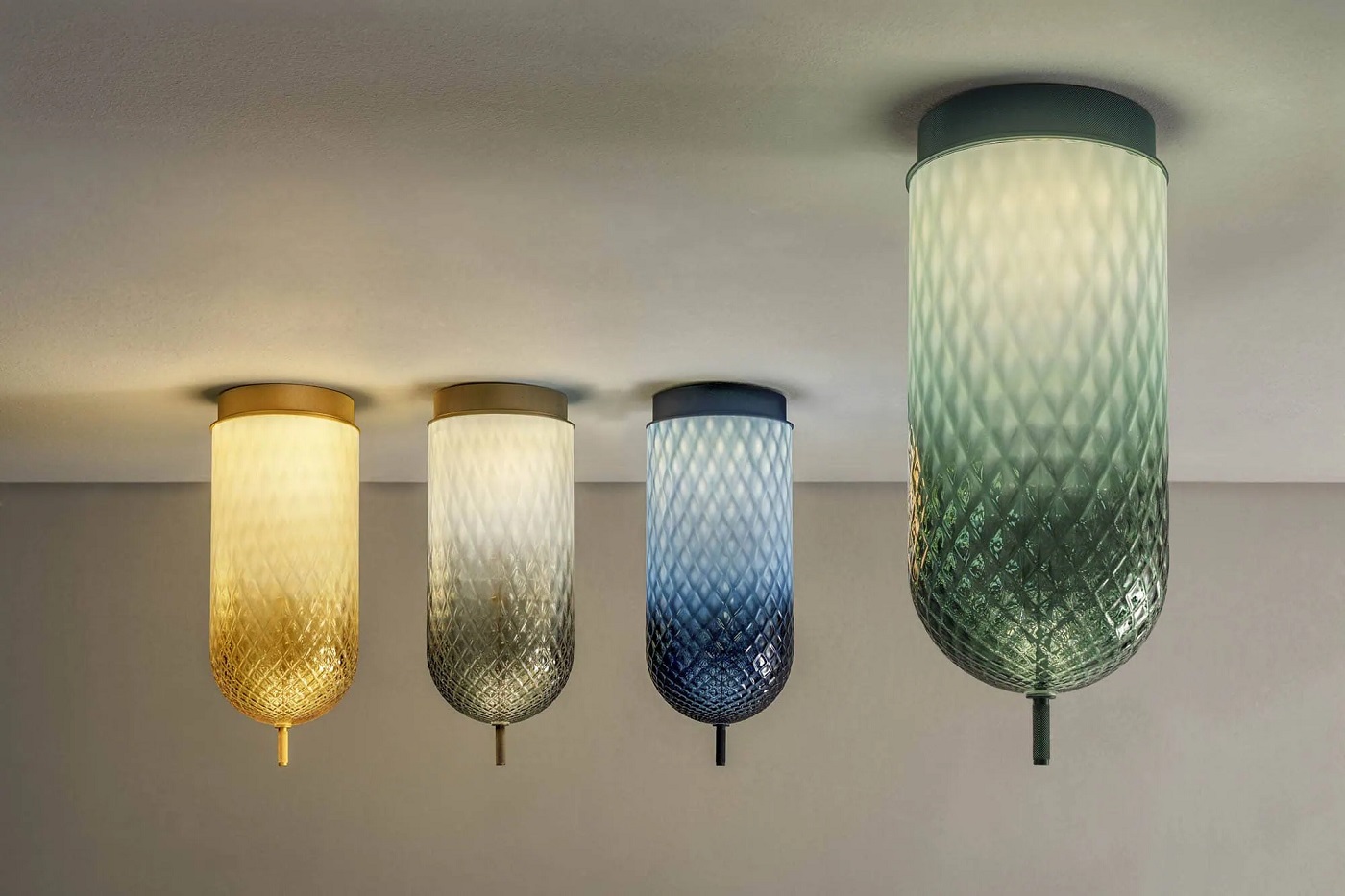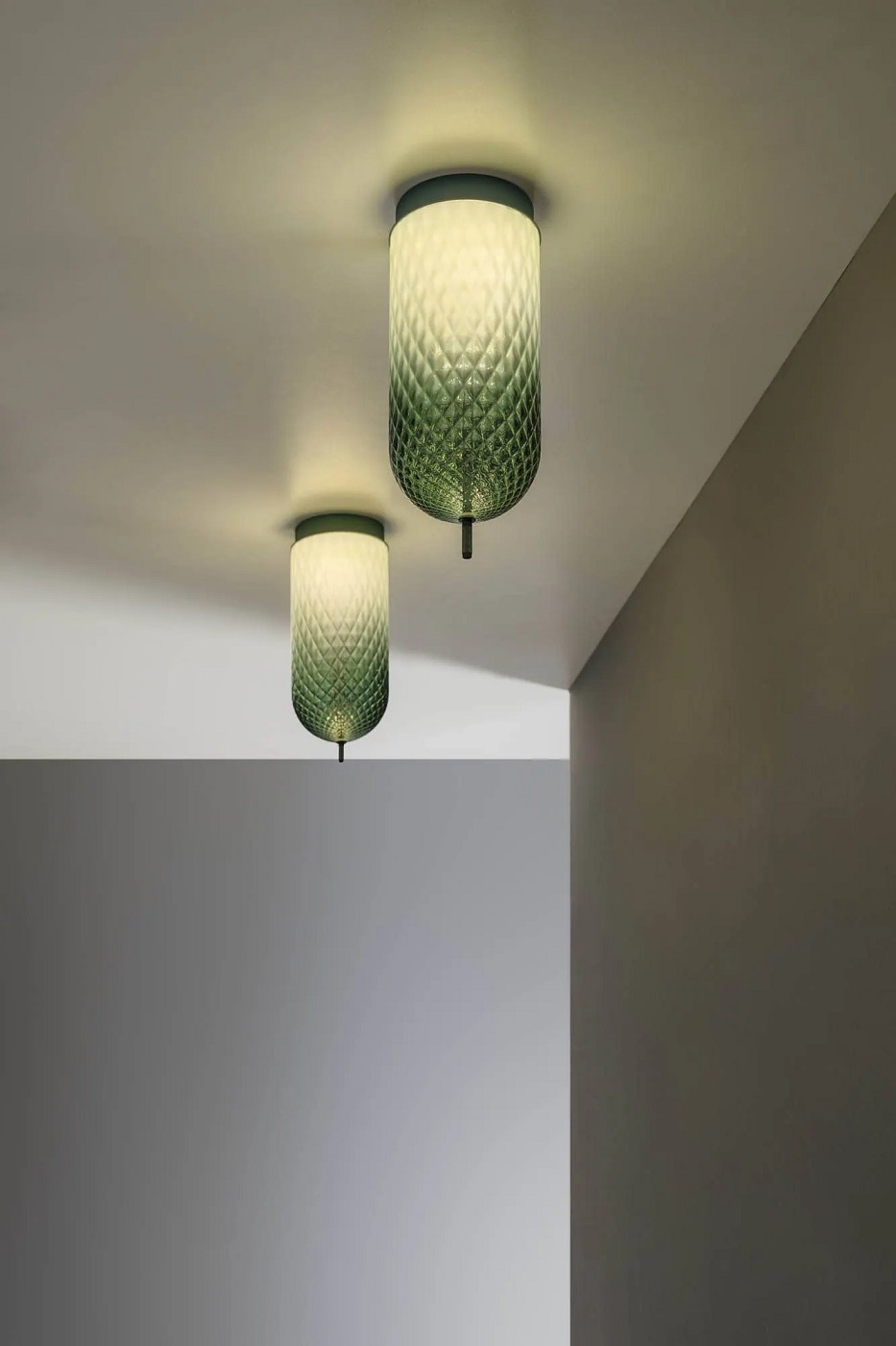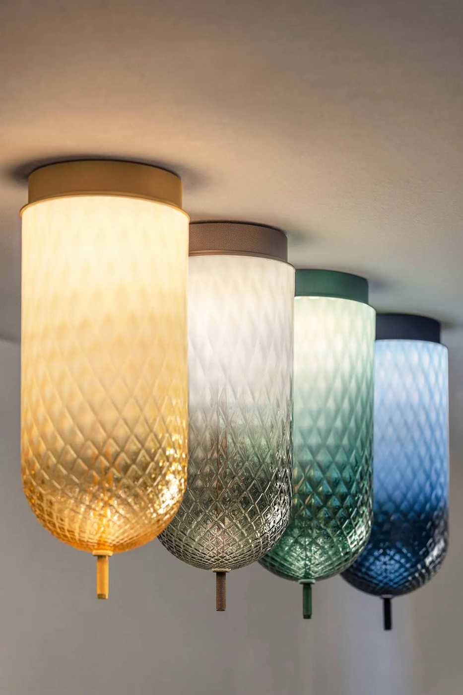 Потолочный светильник OLEV Curuba PL из выдувного стекла с перекрестной текстурой поверхности.