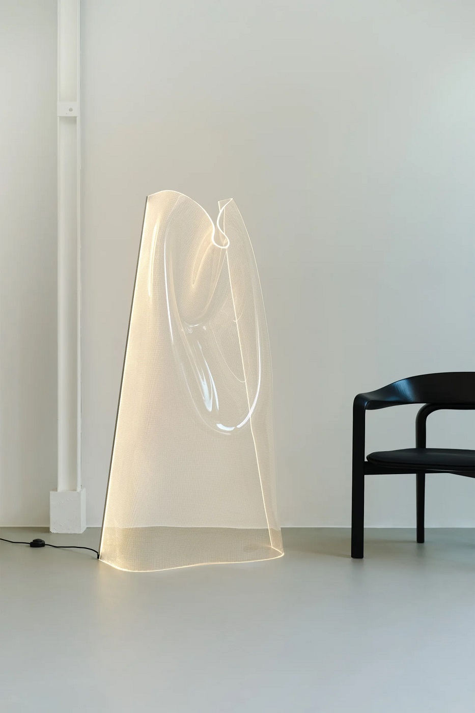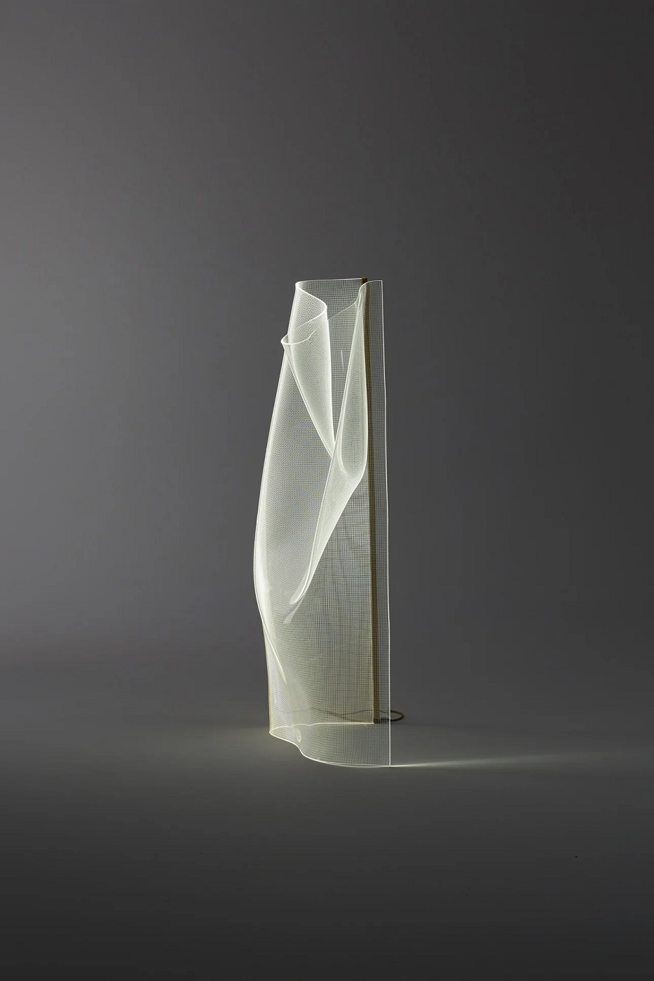 Напольный светильник Parachilna GWEILO HAN GR изготовлен из акрила ручной формовки с металлическим профилем с отделкой золотого цвета. Под заказ доступна серебряная отделка.
