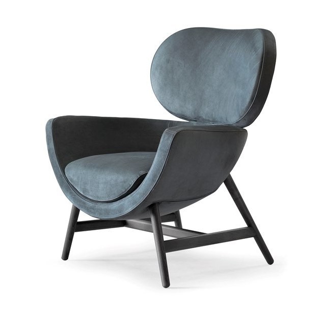 Кресло Pianca Laurie из ткани серого цвета (velvet 24) и основанием из дерева с отделкой темный дуб (Rovere Tabacco). Под заказ возможно заказать различные варианты отделок и цветов.
