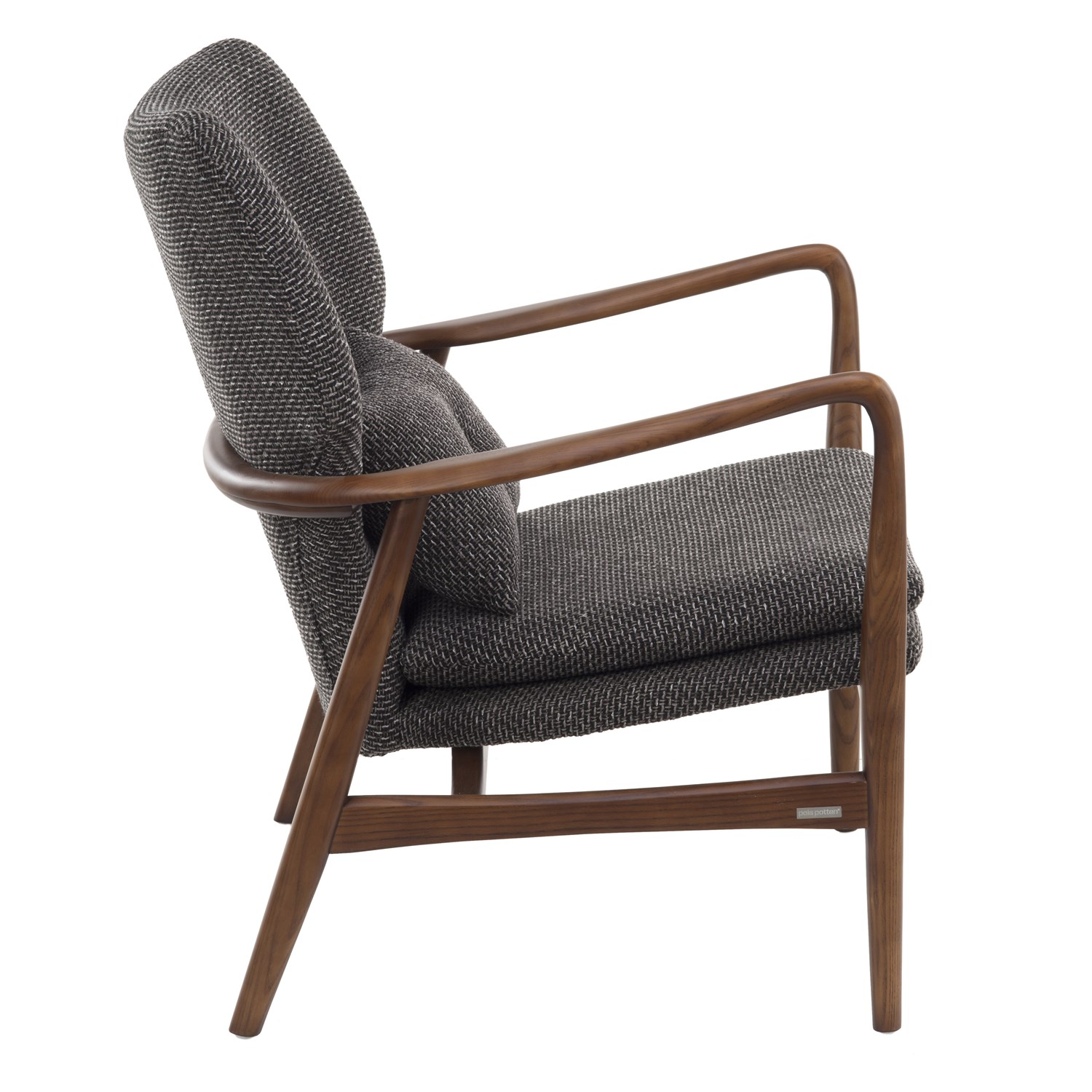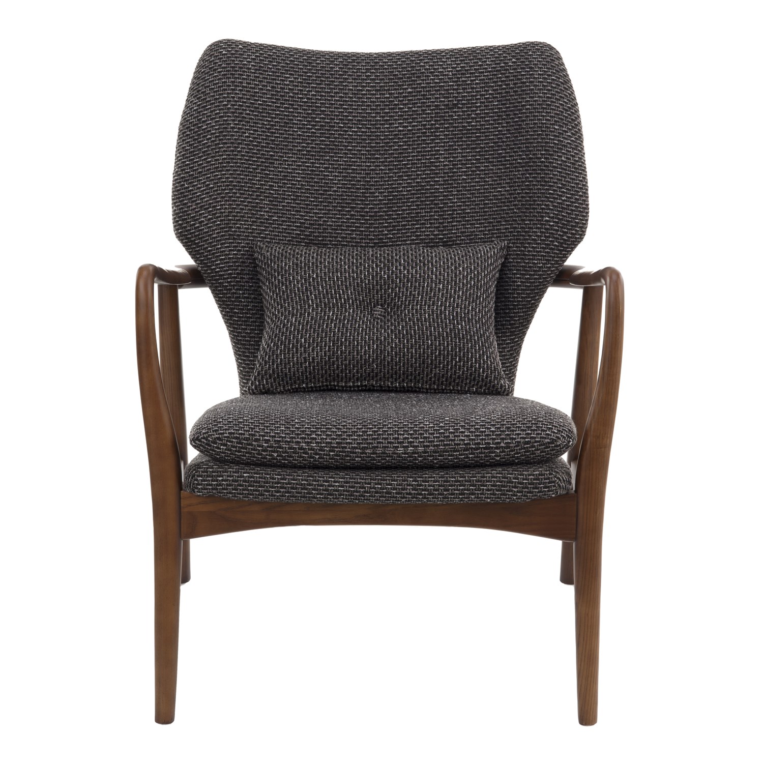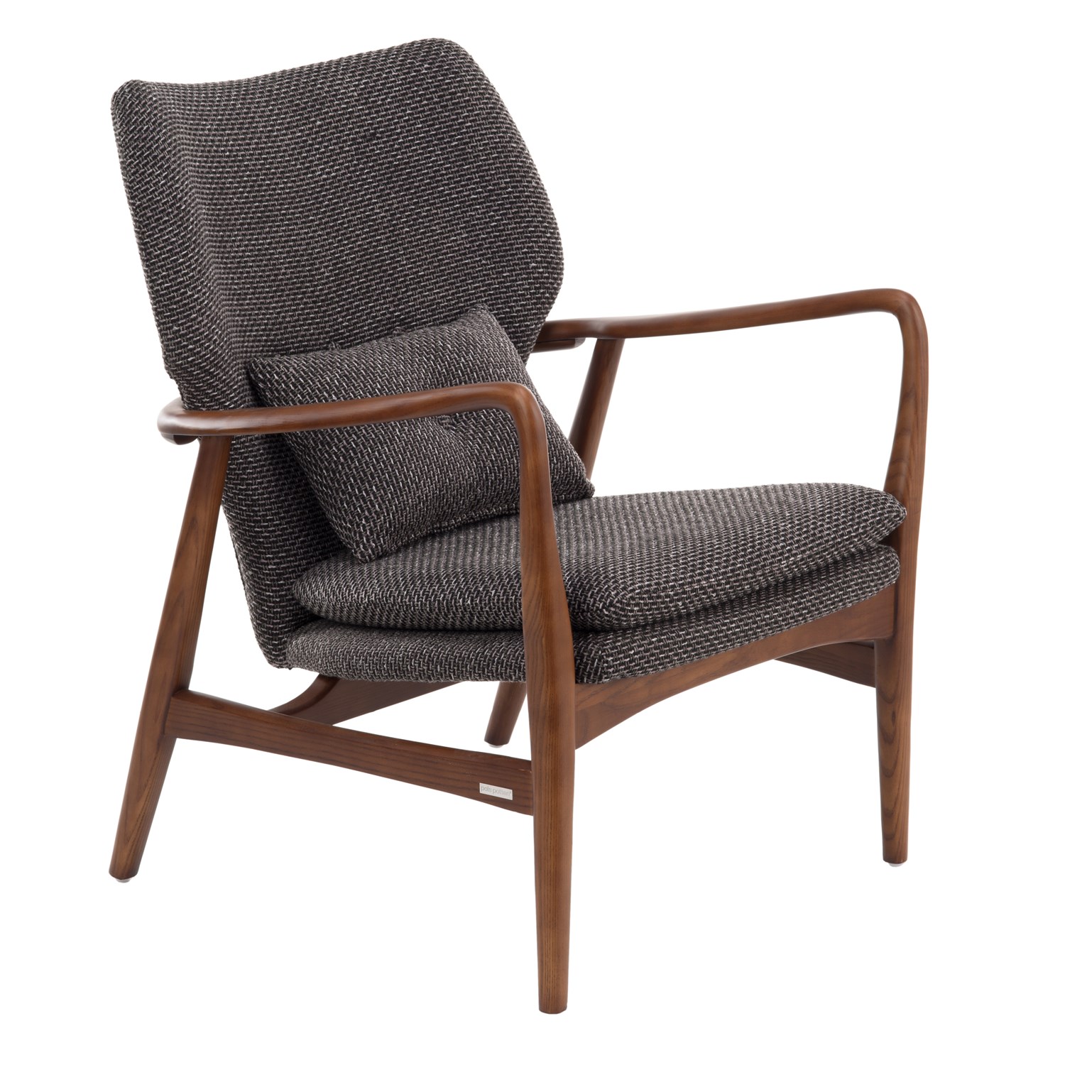 Кресло с обивкой из ткани серого цвета, деревянным основанием из полированного ясеня и дополнительной декоративной подушкой. Состав: 75% полиэстр, 25% хлопок. Использование только внутри помещения. FSC™ certificate code: SGSCH-COC-030018. Дизайн: Pols Potten Studio.