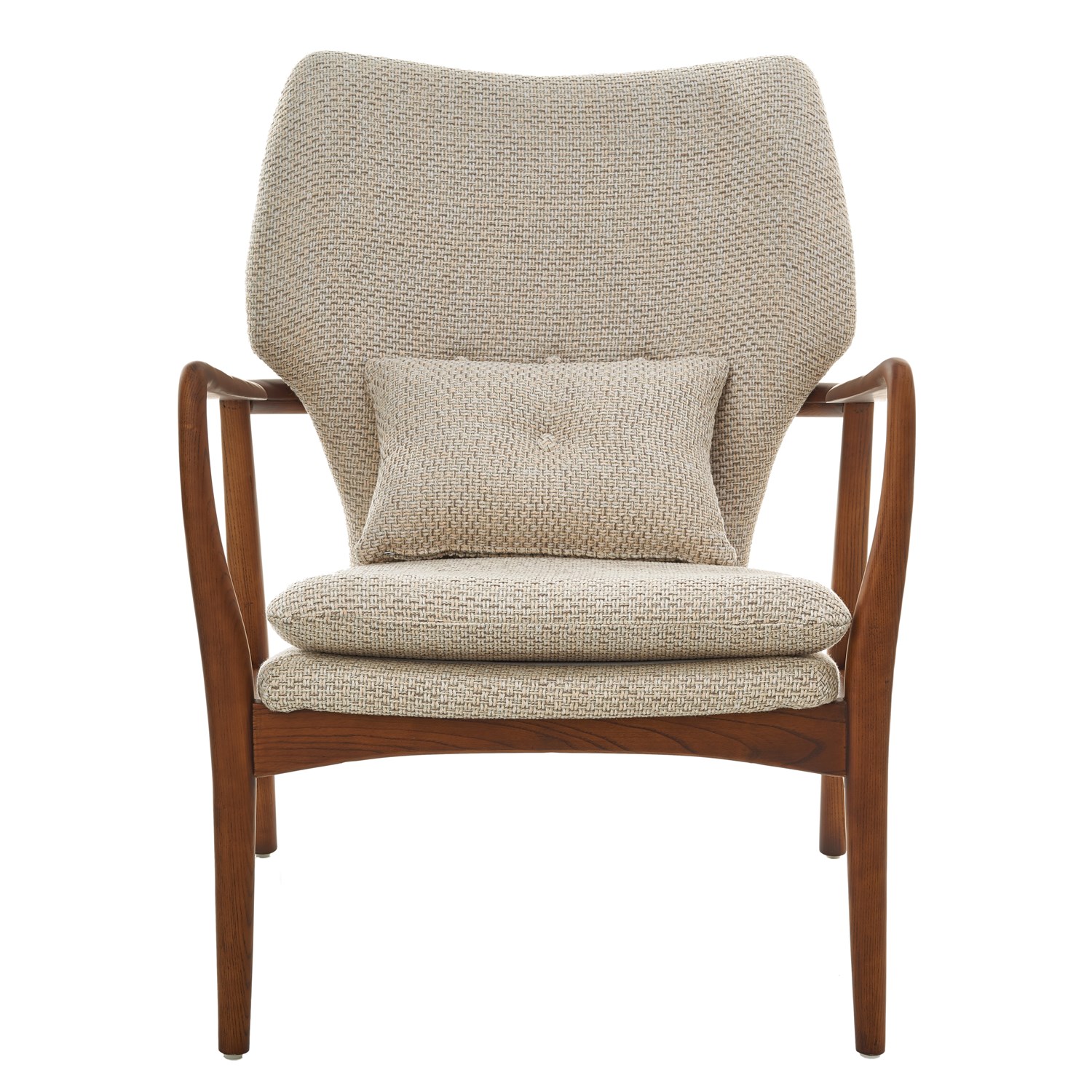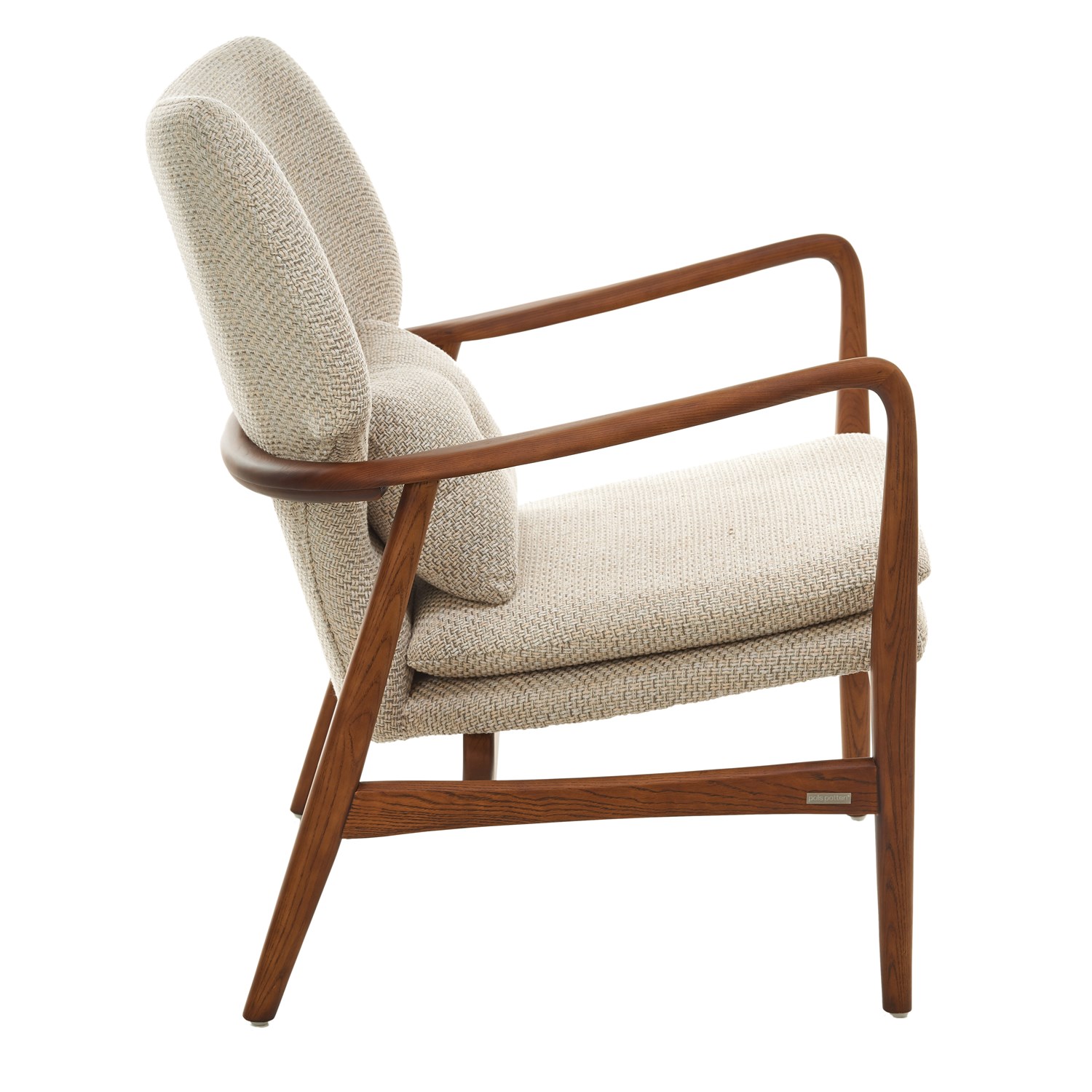 Кресло с обивкой из ткани бежевого (экрю) цвета, деревянным основанием из полированного ясеня и дополнительной декоративной подушкой. Состав: 75% полиэстр, 25% хлопок. Использование только внутри помещения. FSC™ certificate code: SGSCH-COC-030018. Дизайн: Pols Potten Studio.