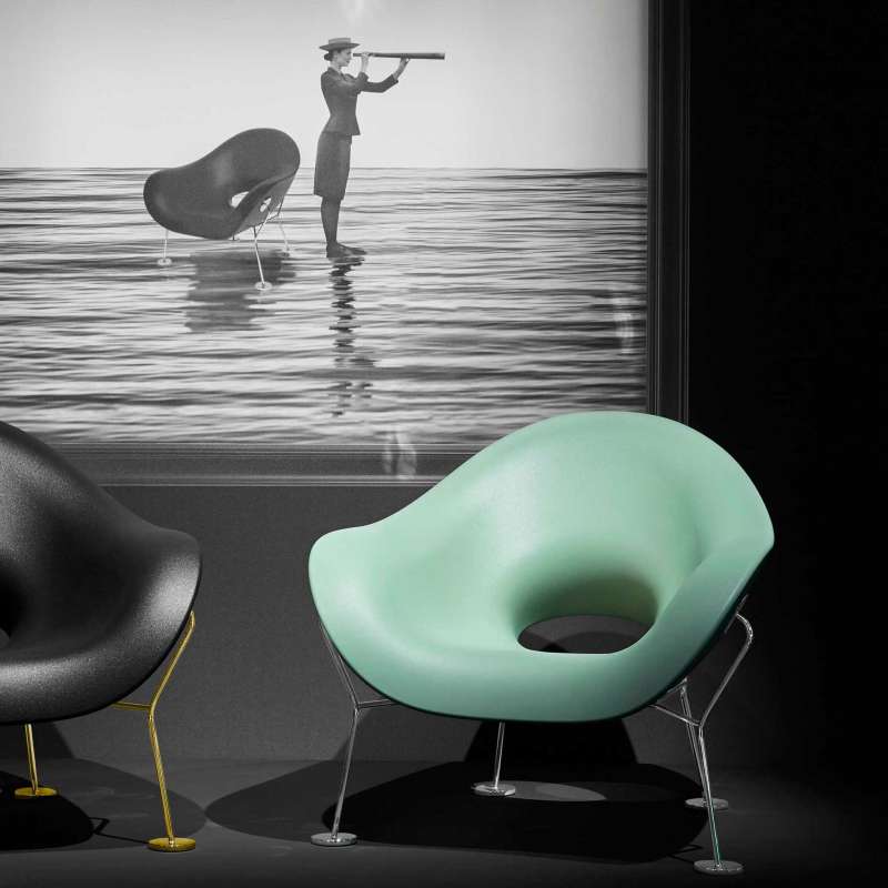 Кресло Pupa — это смелое и стильное решение для требовательных ценителей комфорта и необычных форм. Хромированное металлическое основание удерживает парящий корпус из переработанного формованного полиэтилена — практичный и надежный выбор для уличной мебели с заботой о ее долгосрочной функциональности и эстетике.