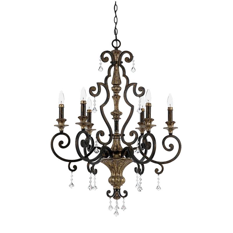Люстра Elstead Lighting QZ-MARQUETTE6-A. Созданный с использованием многогранной кристаллической гирлянды — светильник романтичен как романтичен париж. Основание выполнено в цветах - Бронза, Золото. Можно использовать при освещении гостинной, кухни, спальни, столовой. Цепь 2438 мм в комплекте