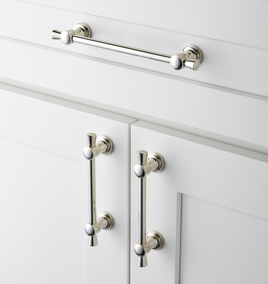 Ручка-скоба Rejuvenation Cowan Polished Nickel из латуни. Расстояние между крепежными отверстиями 15,2см.