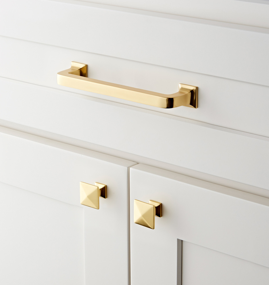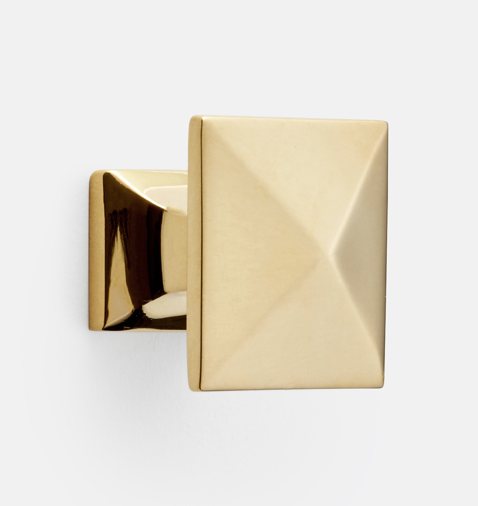Ручка-кнопка Rejuvenation Mission Pyramid Unlacquered Brass из латуни.