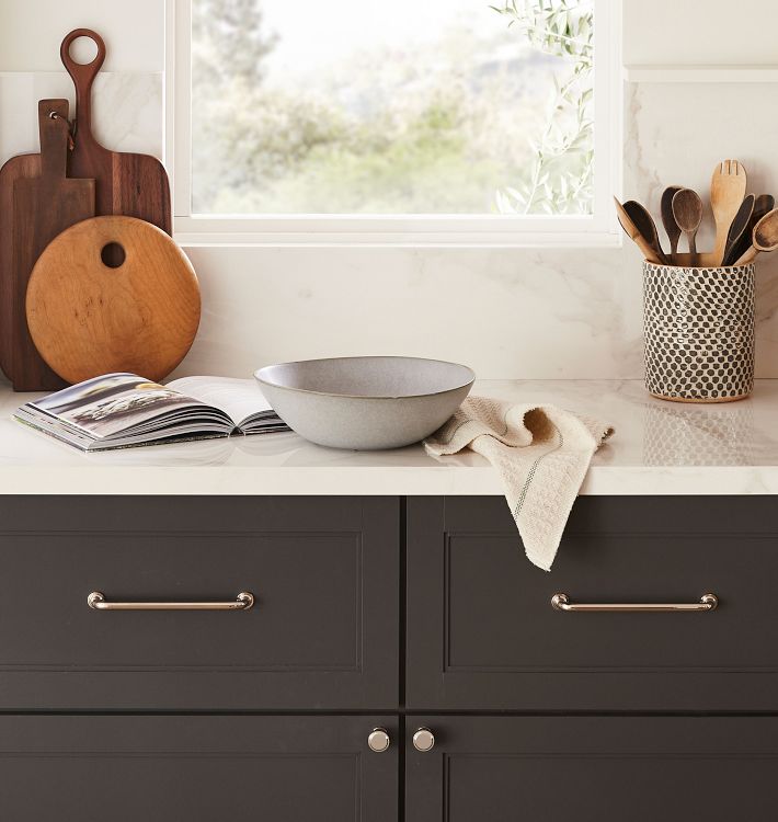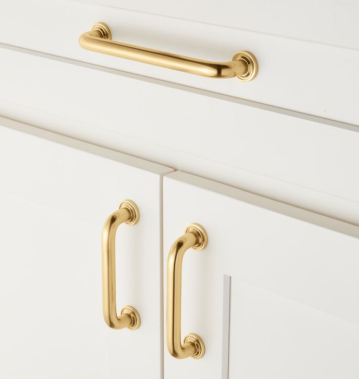 Цена указана за ручку-скобу Ansel в цвете состаренной латуни с крепежным расстоянием 10.2см. На выбор доступны различные варианты отделок и длин: