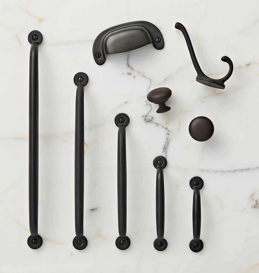 Цена указана за ручку-скобу Massey Aged Brass с крепежным расстоянием 7.6 см с темно-бронзовым матовым напылением. На выбор доступны различные варианты отделок и длин:
