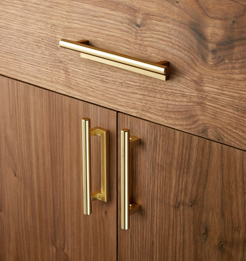 Ручка-скоба Rejuvenation Upton Aged Brass с тонким обтекаемым дизайном придает современный вид любому пространству. Сделана из цельной литой латуни. Расстояние между крепежными отверстиями 20,3см.