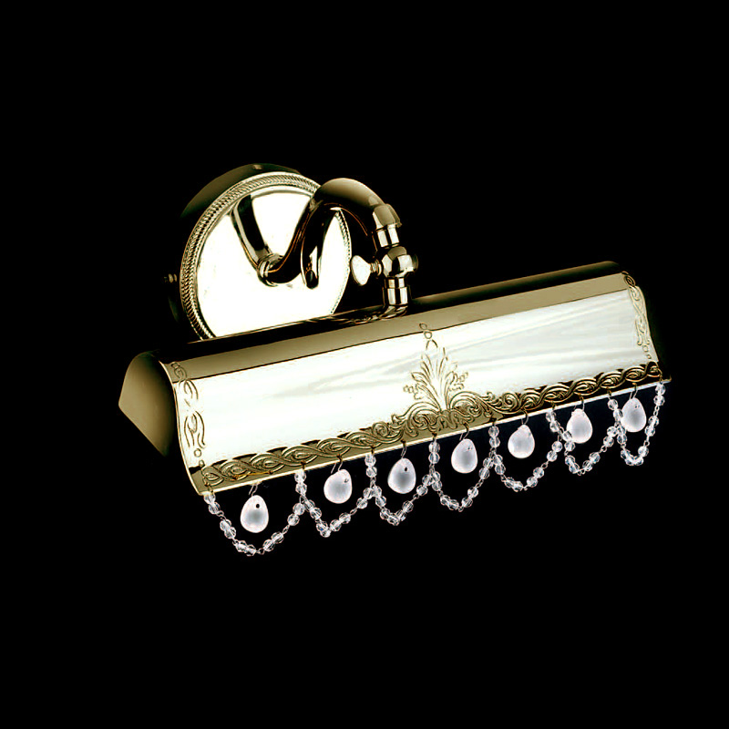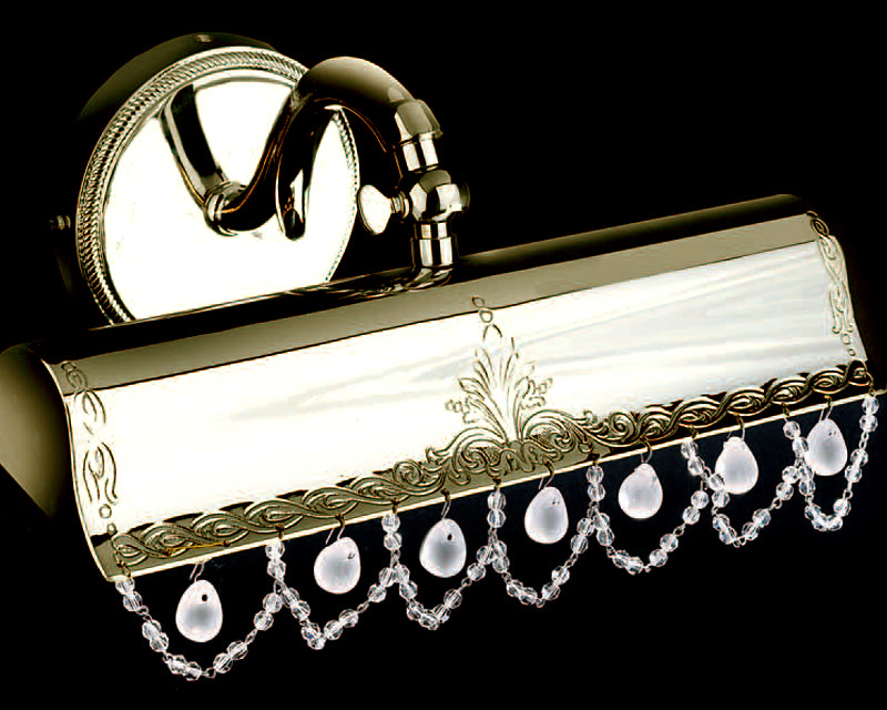 Подсветка для картин из металла цвета античное золото с эффектом состаривания (патиной). Декор - подвески из муранского стекла и бусы из хрусталя SWAROVSKI SPECTRA.