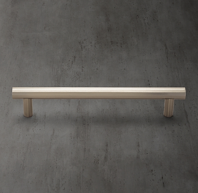 Ручка-скоба Durham Satin Nickel из латуни. Расстояние между крепежными отверстиями 10.2см. Дизайн коллекции мебельной фурнитуры Durham создан Джонатаном Браунингом (Jonathan Browning). Основная часть ручки - двенадцатигранник: каждая грань красиво отражает свет.