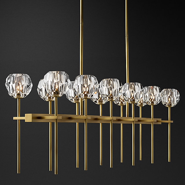 Изготовленный из цельной латуни и хрусталя, скульптурный светильник отражает в своем дизайне минималистский дух 1960-х годов, каждая его деталь изготавливается и полируется вручную, идеально преломляя и отражая свет. Высота подвеса может регулироваться. Минимальная высота: 76,2 см, максимальная высота: 213,36 см.