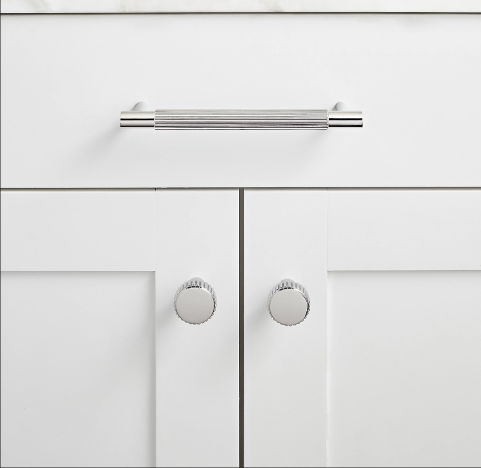 Цена указана за ручку-кнопку Pillars с диаметром 3.2см в цвете полированного хрома. На выбор доступны различные варианты отделок и диаметров: