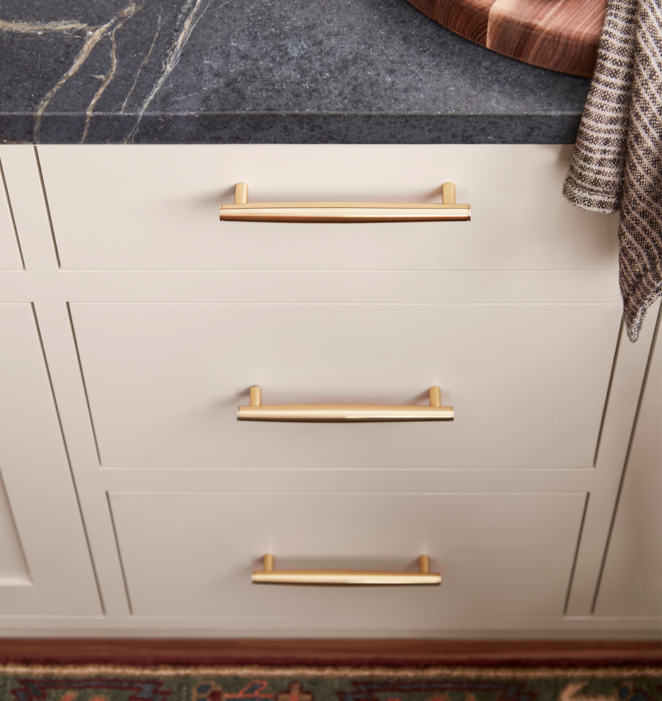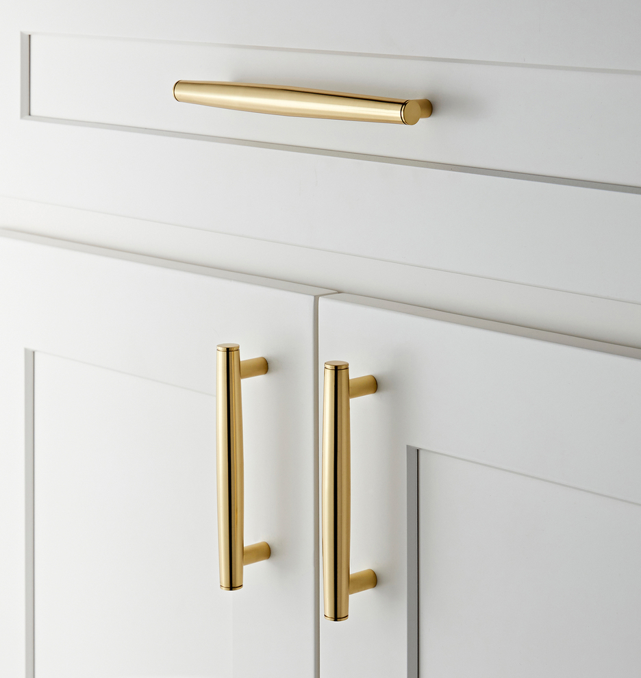 Ручка-скоба Rejuvenation Altona Aged Brass изготовлена из цельной латуни и имеет обтекаемый конический силуэт. Расстояние между крепежными отверстиями 15.2см.