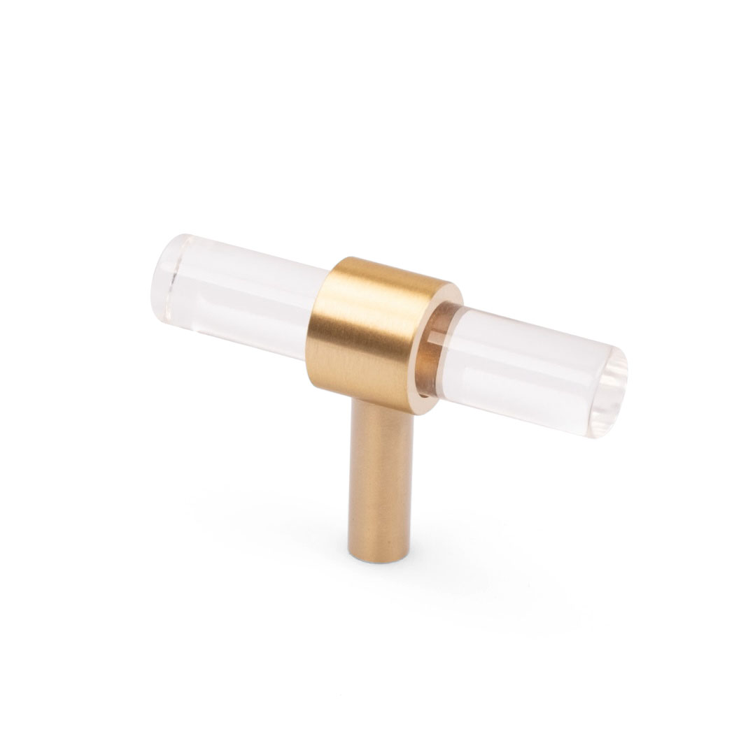 Т-образная мебельная ручка Crystal из коллекции Noir выполнена в безупречном минималистичном стиле. Прозрачный элемент изготовлен из оптического стекла высшей пробы, известного своей исключительной прозрачностью и прочностью. Основание выполнено из литой латуни, гарантирующей качество и долговечность эксплуатации.