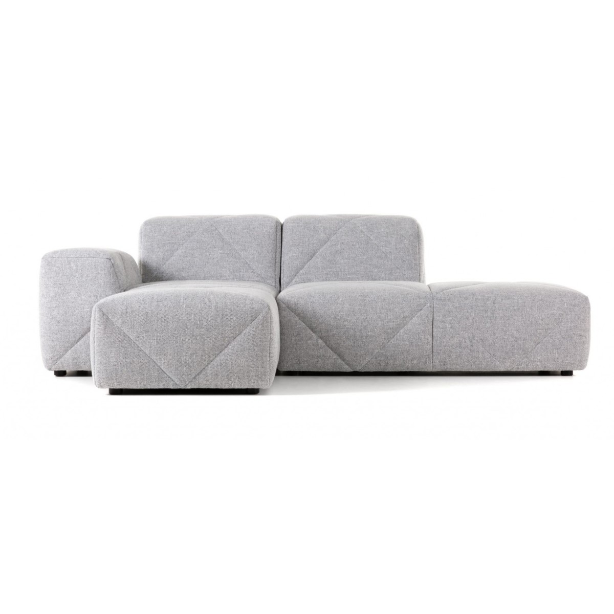 Диван BFF из ткани Vesper серебряного цвета (лен 40%, вискоза 30%, полиэстер 10%, полиамид 10%, хлопок 10%) и основанием из дерева, стальных пружин и пенопласта, состоит из 2-х модулей.