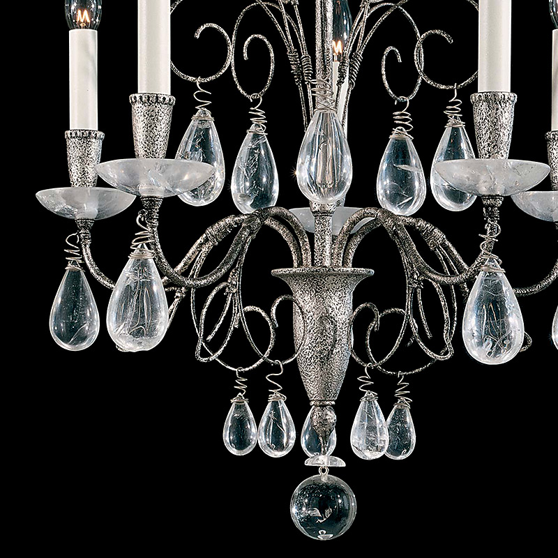 Подвесной светильник 5-ти рожковый из коллекции Tesoro на металлической арматуре. Цвет арматуры: французское золото. Декор: кулоны и чашечки из прозрачного горного хрусталя. Высота светильника регулируется за счет звеньев цепи.