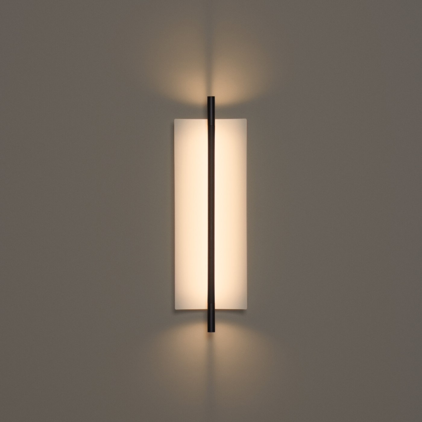 Настенный светильник Santa and Cole Lamina 45 с бело-серым металлическим абажуром с глянцевой отделкой (снаружи). Черная металлическая арматура с матовой отделкой.
