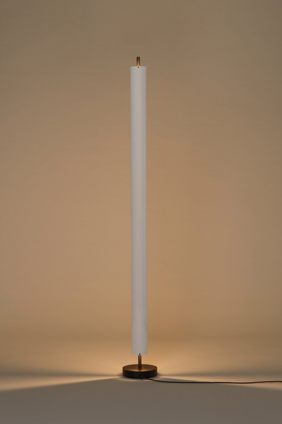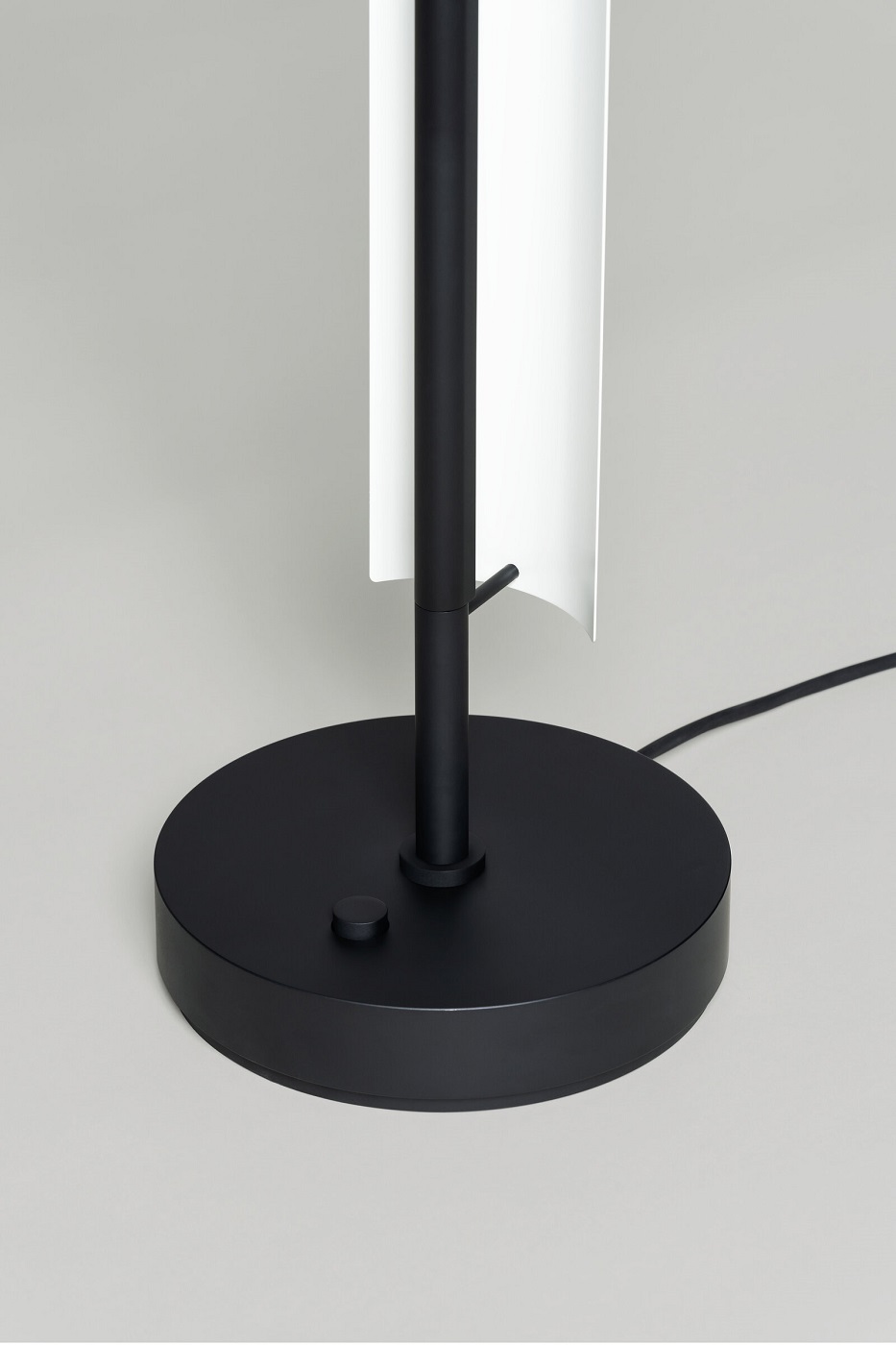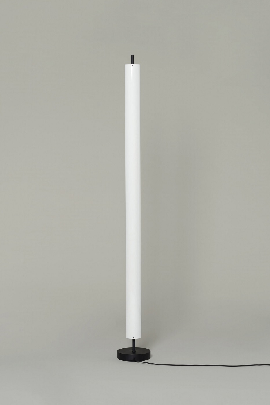 Торшер Santa and Cole Lamina 165 с бело-серым металлическим абажуром с глянцевой отделкой (снаружи). Черная металлическая арматура с матовой отделкой. Электрический кабель 2,5м.