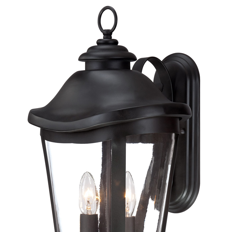Настенный уличный светильник из коллекции Freemont выполнен из кованного металла. Створки плафона из прозрачного стекла. Цвет арматуры: черный. Дизайн: Savoy House Team.