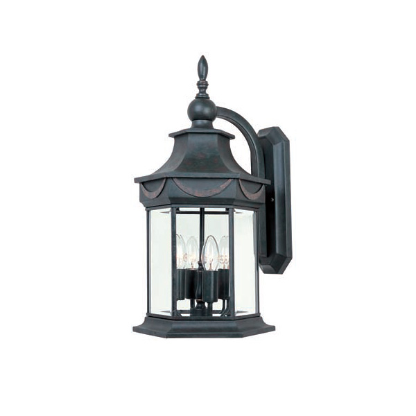 Настенный уличный светильник из коллекции Kokomo выполнен из кованного металла. Створки плафона из прозрачного стекла. Цвет арматуры: черное золото.