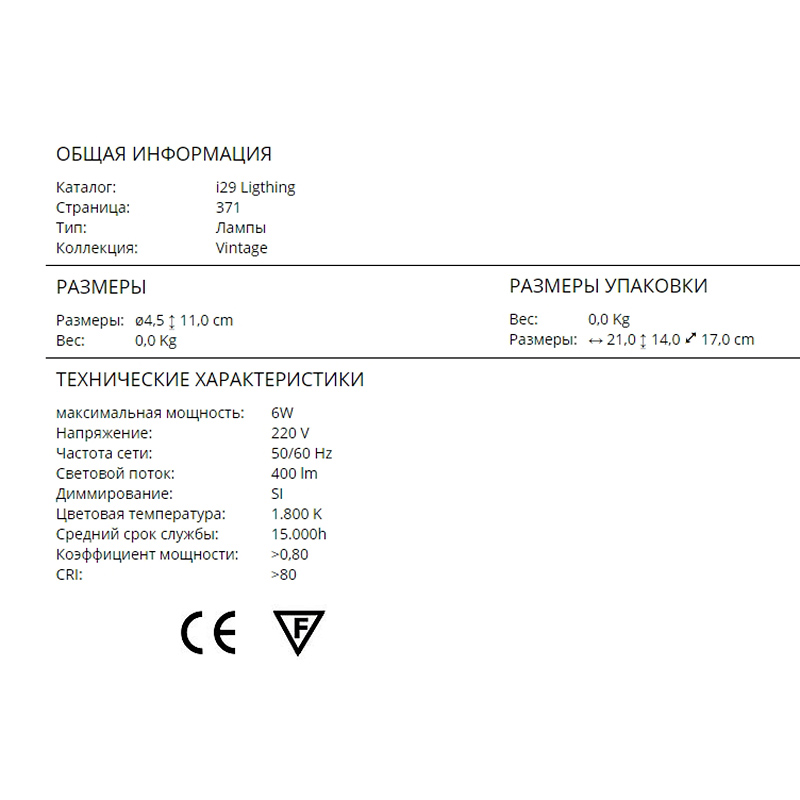 Светодиодная ретро-лампа тёплого света, диммируемая T45 6W. Выполнена из стекла янтарного цвета, нить накала LED, 400 Lm, 1800K. Ширина светового потока 360°, цоколь Е27. Энергопотребление: 801 час.