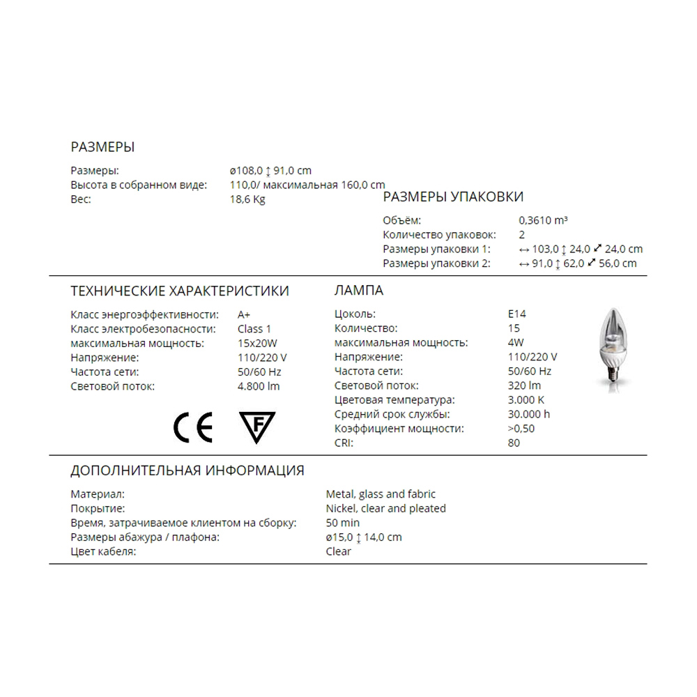 Люстра 15-ти рожковая из коллекции Holandesa. Арматура выполнена из углеродистой стали, на арматуре крупные шары из прозрачного стекла. Абажуры выполнены из плиссированной ткани кремового цвета. Высота светильника регулируется до 160 см.