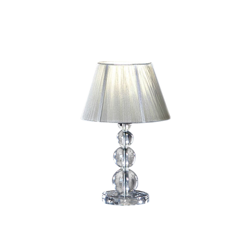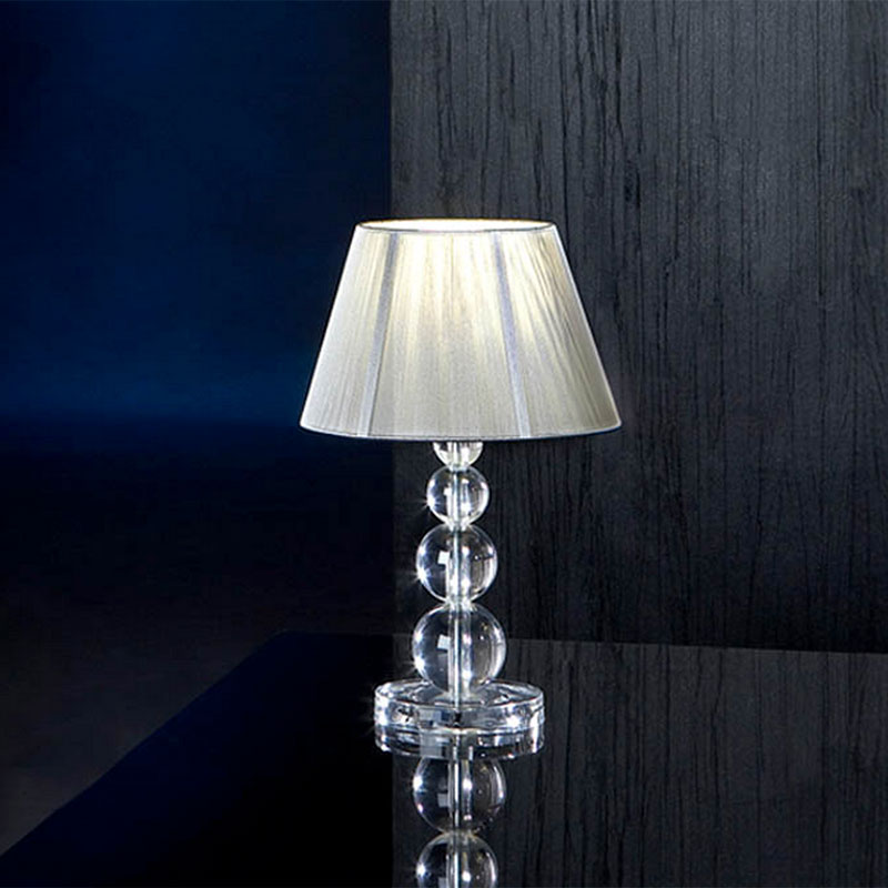 Настольная лампа MERCURY выполнена в виде плетенного из шелковой серебристой тесьмы абажура и основания состоящего из пирамиды шаров, изготовленных из прозрачного метакрилата. Абажур имеет подкладочную ткань.