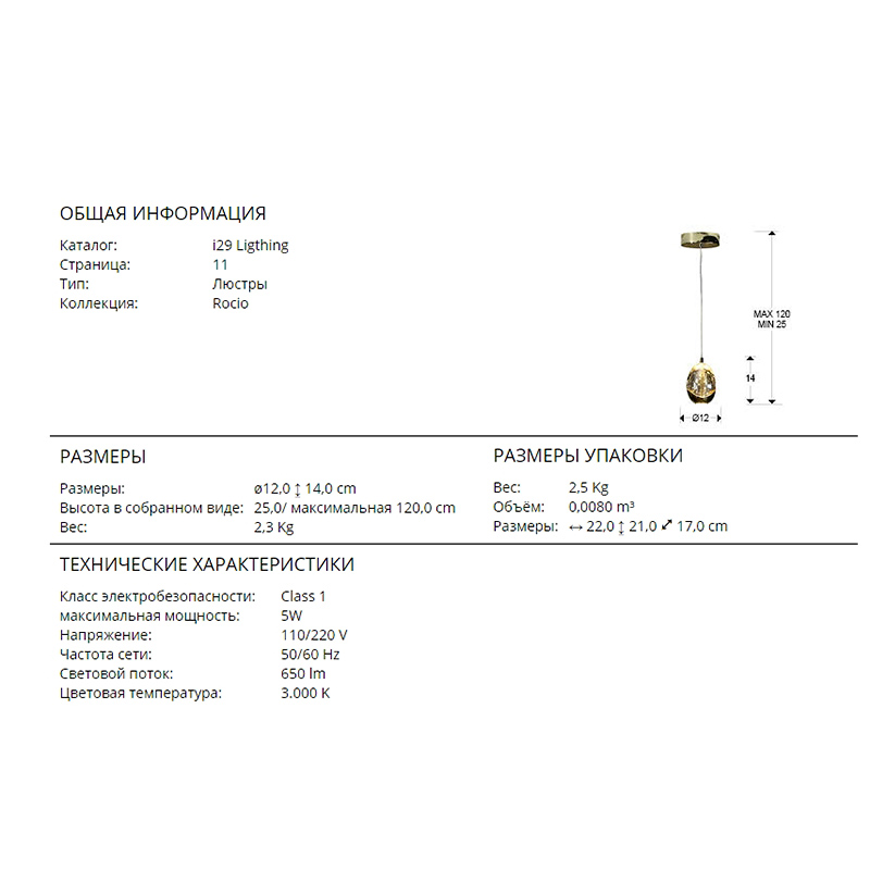 Подвесной светодиодный светильник из коллекции Rocio. Плафон в форме капли из массивного стекла с декоративными пузырьками внутри. Арматура выполнена из металла золотого цвета. Высота светильника регулируется до 120 см.
