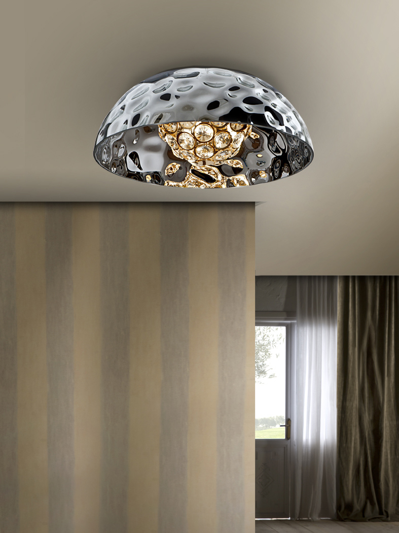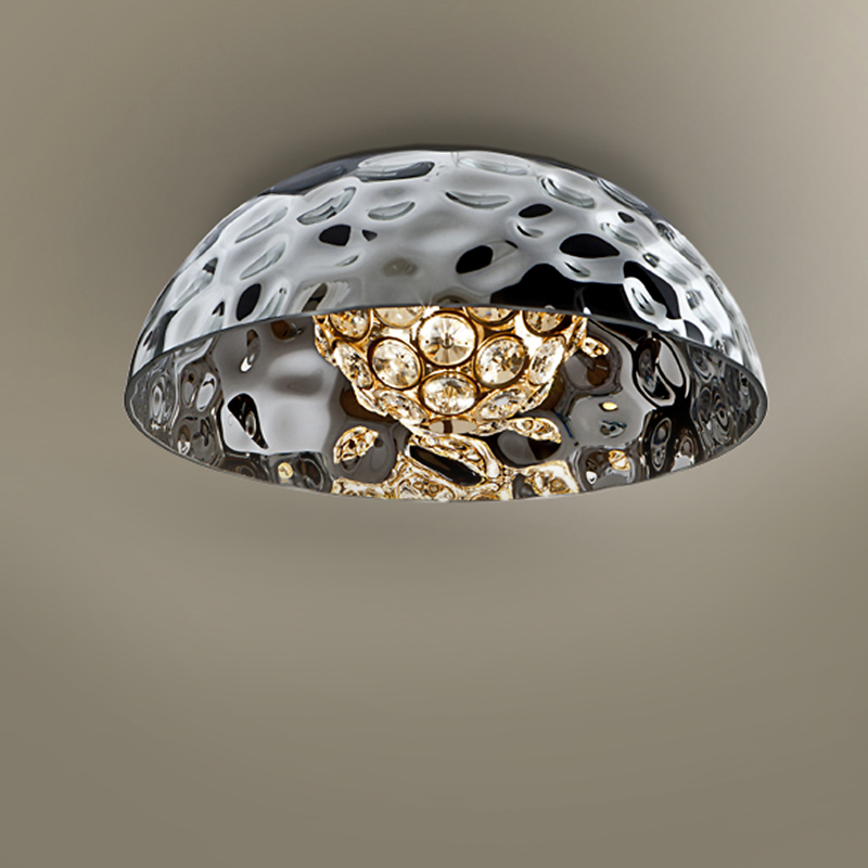 Потолочный светильник из коллекции Mare. Плафон выполнен из фактурного металла с покрытием "блестящий хром". Внутренняя часть плафона состоит из прозрачных кристаллов.