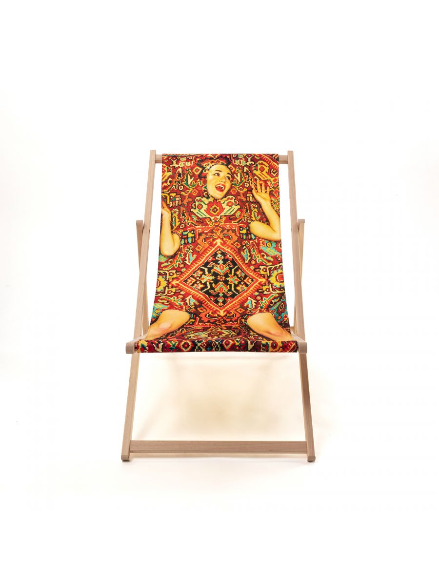 Шезлонг Seletti Deck Chair Lady on Carpet. Садитесь поудобнее, доставайте любимый журнал и потягивайте свой напиток так, как будто вас никто не видит. С пляжными креслами Seletti всегда можно уйти на каникулы.