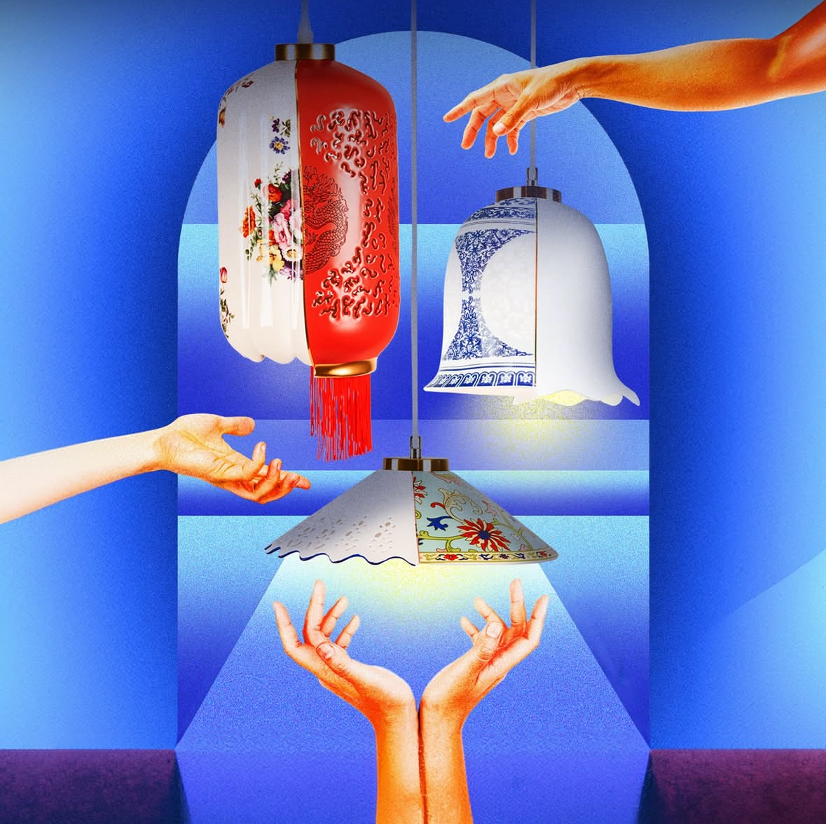 Подвесной светильник Seletti Verpira из коллекции Hybrid, изготовлен из фарфора.