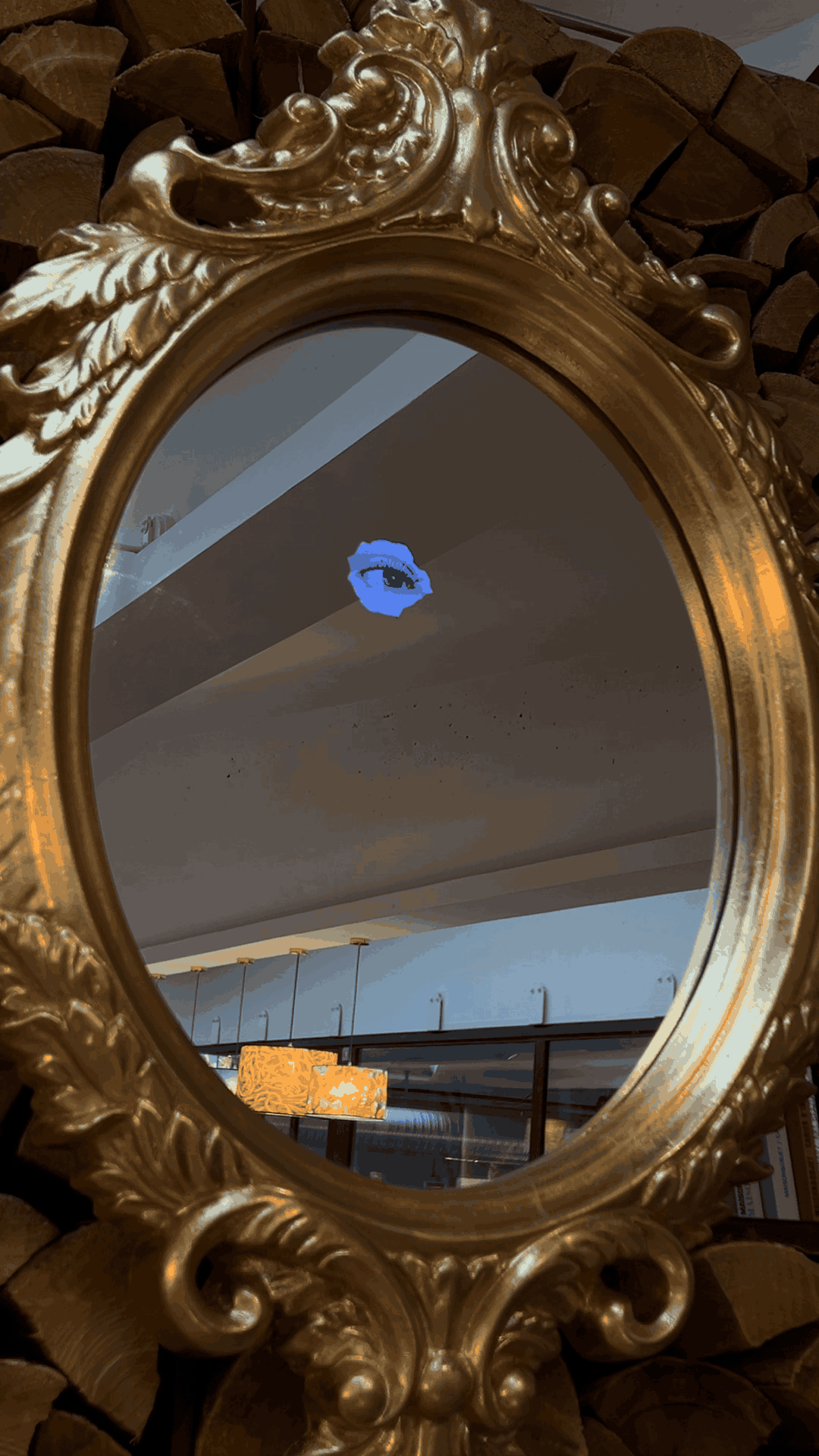 Память о прошлом сегодня собирается в новом обличье. Зеркало веками меняет направление света, но анимированные глаза занимают место наблюдателя и переворачивают саму функцию зеркала: пока мы смотрим в зеркало, глаза смотрят на нас и на окружающий мир.