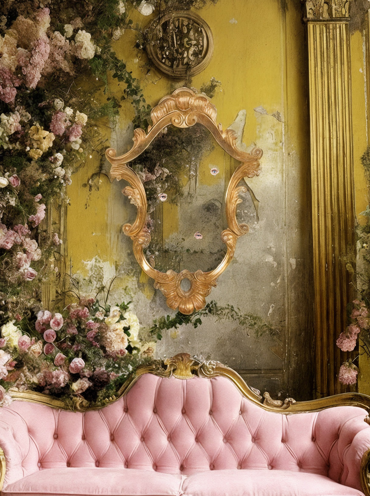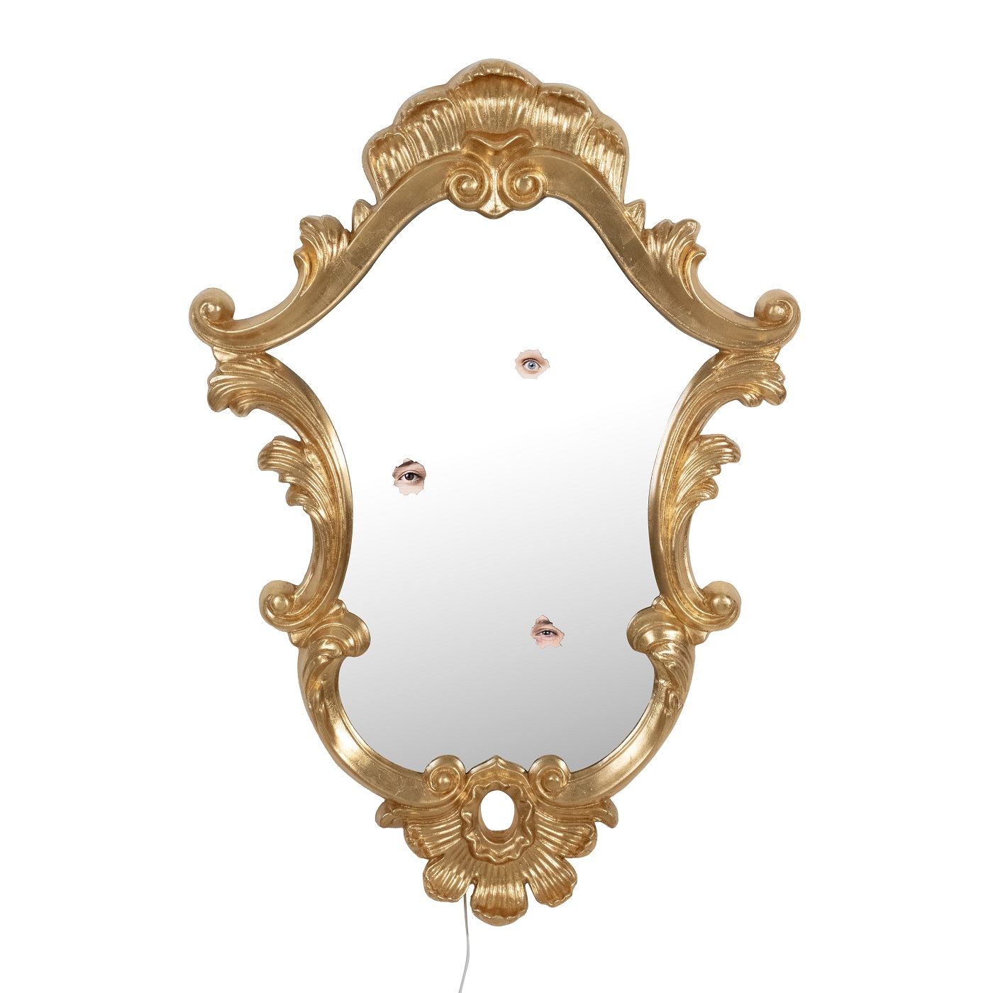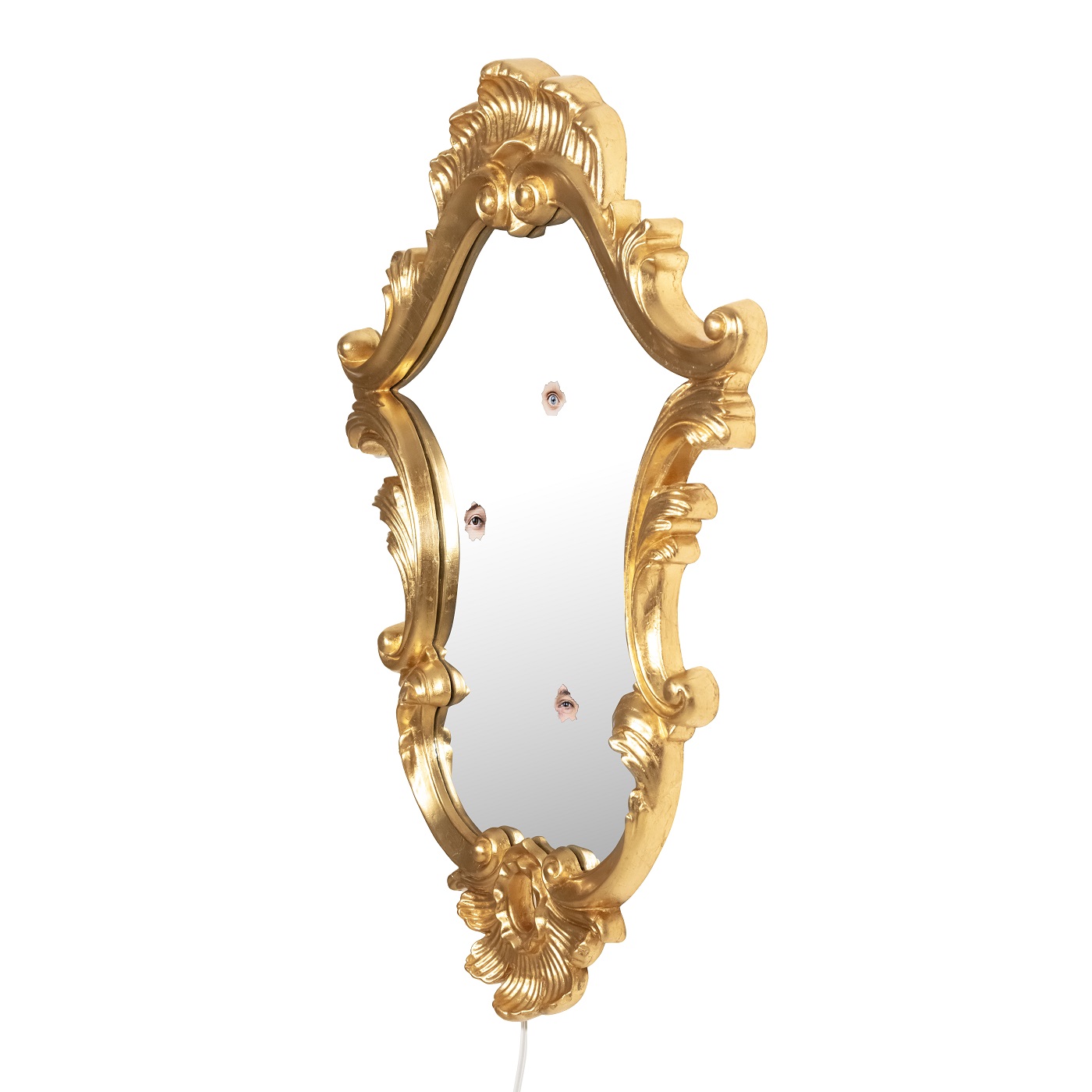 Настенное зеркало Seletti Trilogi в раме из полиуретана с золотой отделкой.