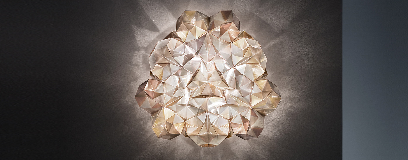Настенный светильник DRUSA CEILING-WALL с оригинальным дизайном. Плафон медного цвета выполнен из необычного материала под названием LENTIFLEX. Это материал, изготавливаемый по собой технологии, которая делает его поверхность «многогранной», как будто бы он сделан из многих маленьких призм. Благодаря наложению двух слоев материала с углом наклона в 0,15 градусов, LENTIFLEX, как вода, изменяет свою форму и цвет с разных точек наблюдения. Основа материала позволяет получить эффект Френеля: пропускает свет, но, в то же время, преломляет его, увеличивает яркость источника света, предотвращая при этом ослепление и создавая переливающиеся цветовые оттенки. Дизайн: Adriano Rachele. Светильник может использоваться как потолочный. (Арт. DRU78PLF0000LCY00)