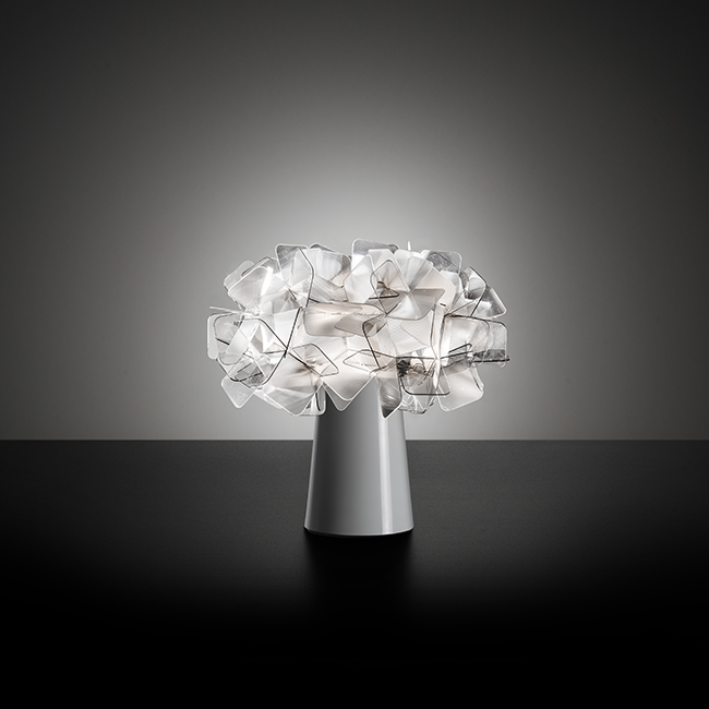 Настольная лампа Clizia Mini Fume с оригинальным дизайном. Плафон дымчатого цвета на белом основании выполнен из необычного материала под названием Lentiflex/Cristalflex Fum?. Это материал, изготавливаемый по собой технологии, которая делает его поверхность «многогранной», как будто бы он сделан из многих маленьких призм. Благодаря наложению двух слоев материала с углом наклона в 0,15 градусов, LENTIFLEX, как вода, изменяет свою форму и цвет с разных точек наблюдения. Основа материала позволяет получить эффект Френеля: пропускает свет, но, в то же время, преломляет его, увеличивает яркость источника света, предотвращая при этом ослепление и создавая переливающиеся цветовые оттенки. Дизайн: Adriano Rachele. (арт. CLI78TAV0001F_000)